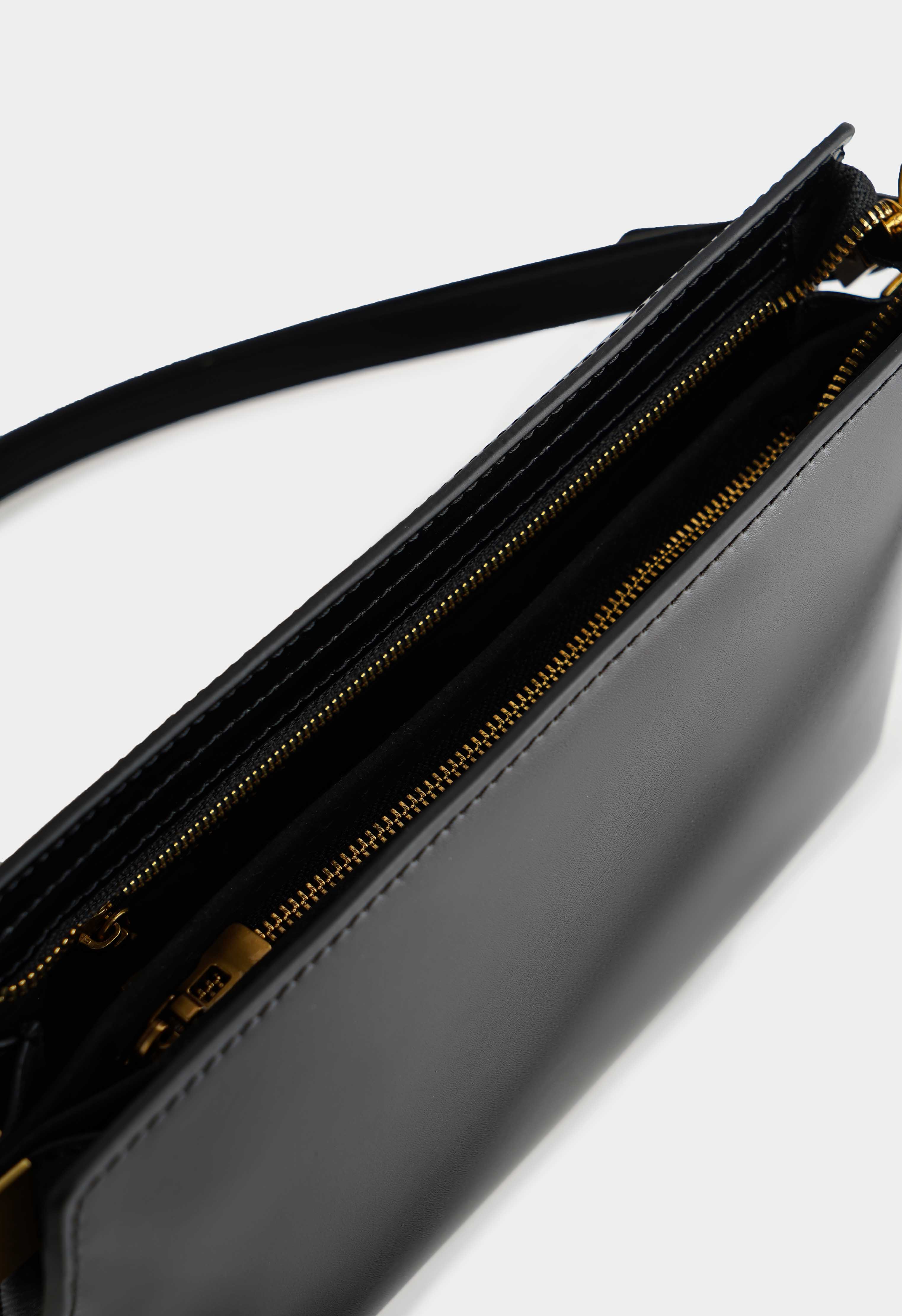 - три отделения, одно на молнии, внутри — карман на молнии и открытый карман.