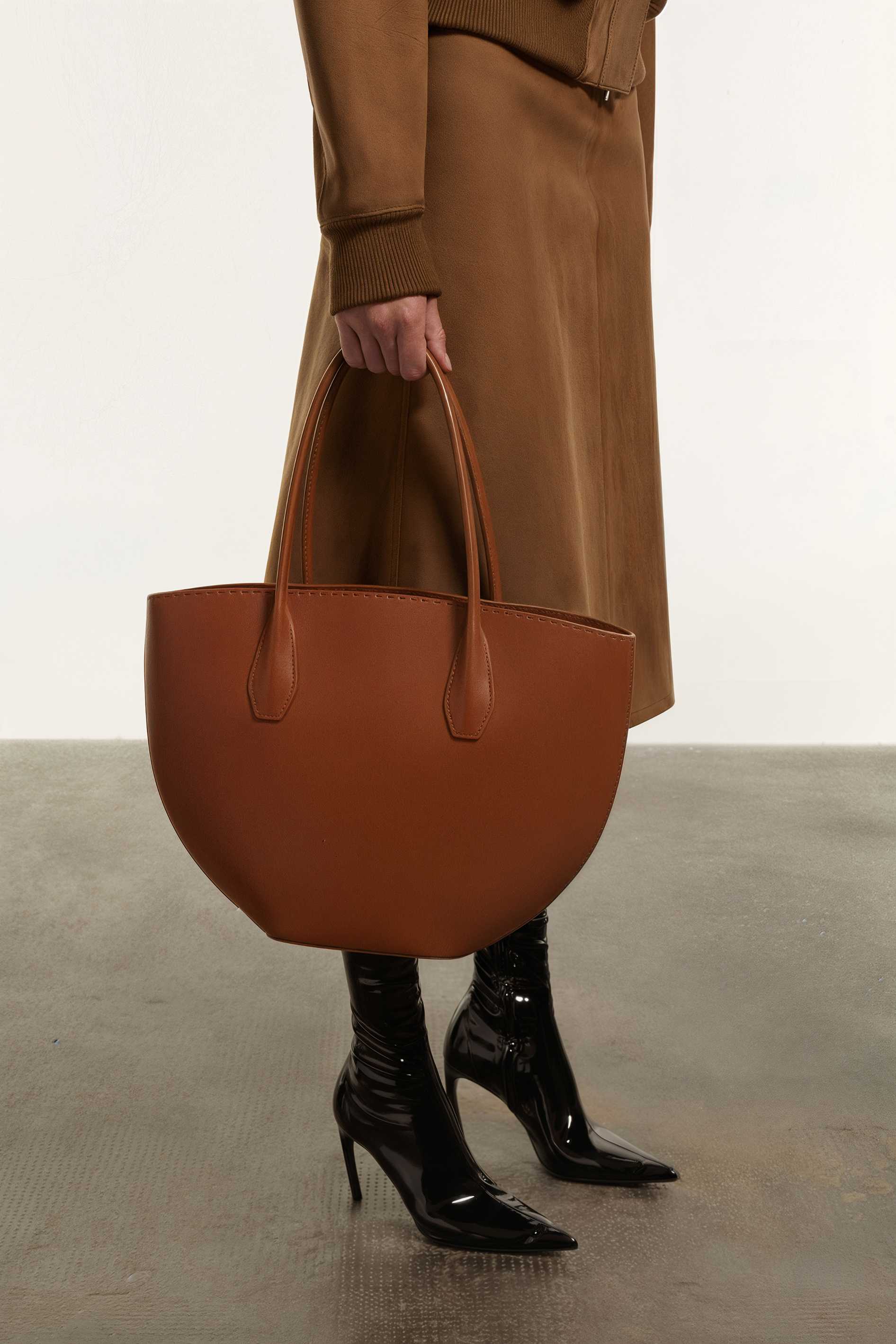 Яркая сумка в рыжем цвете из натуральной кожи выглядит благородно, добавляя образу акцент. Лаконичная форма и длинные удобные ручки делают модель универсальной для города, работы и поездок. Серебряная фурнитура и карабин смотрятся современно и подчеркивают базовый дизайн без лишнего декора. Внутри предусмотрены три кармана, чтобы легко разложить телефон, ключи, документы и мелочи по местам и поддерживать порядок каждый день.