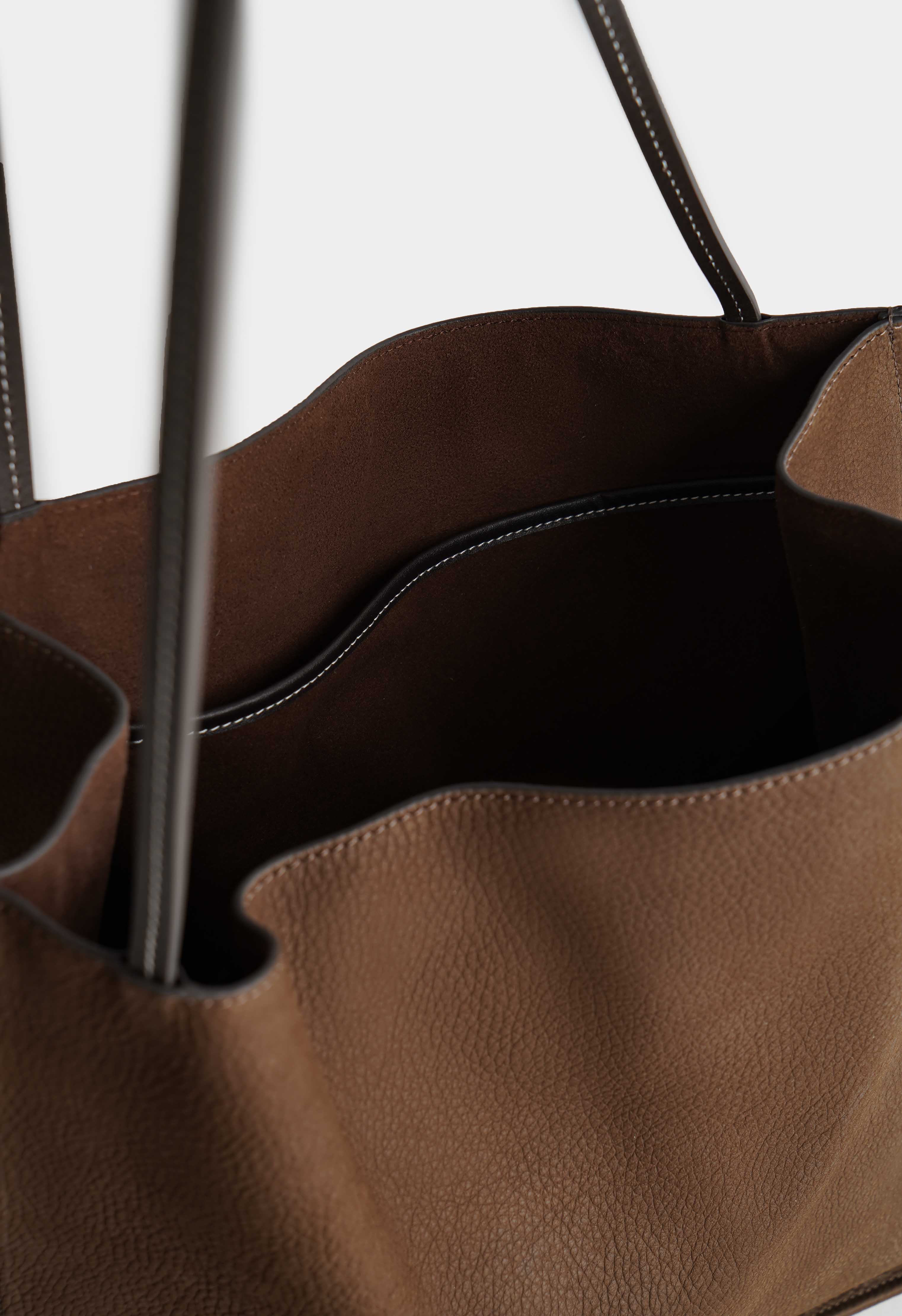 Большая коричневая женская сумка из натурального нубука – эффектный и практичный аксессуар для активной повседневной жизни. Мягкий бархатистый нубук придает сумке благородную фактуру и подчеркивает насыщенный цвет, а внутренний карман помогает удобно организовать самые необходимые вещи. Благодаря вместительному формату эта сумка идеально подойдет для работы, поездок, прогулок и шопинга, сочетая комфорт, функциональность и актуальный стиль.