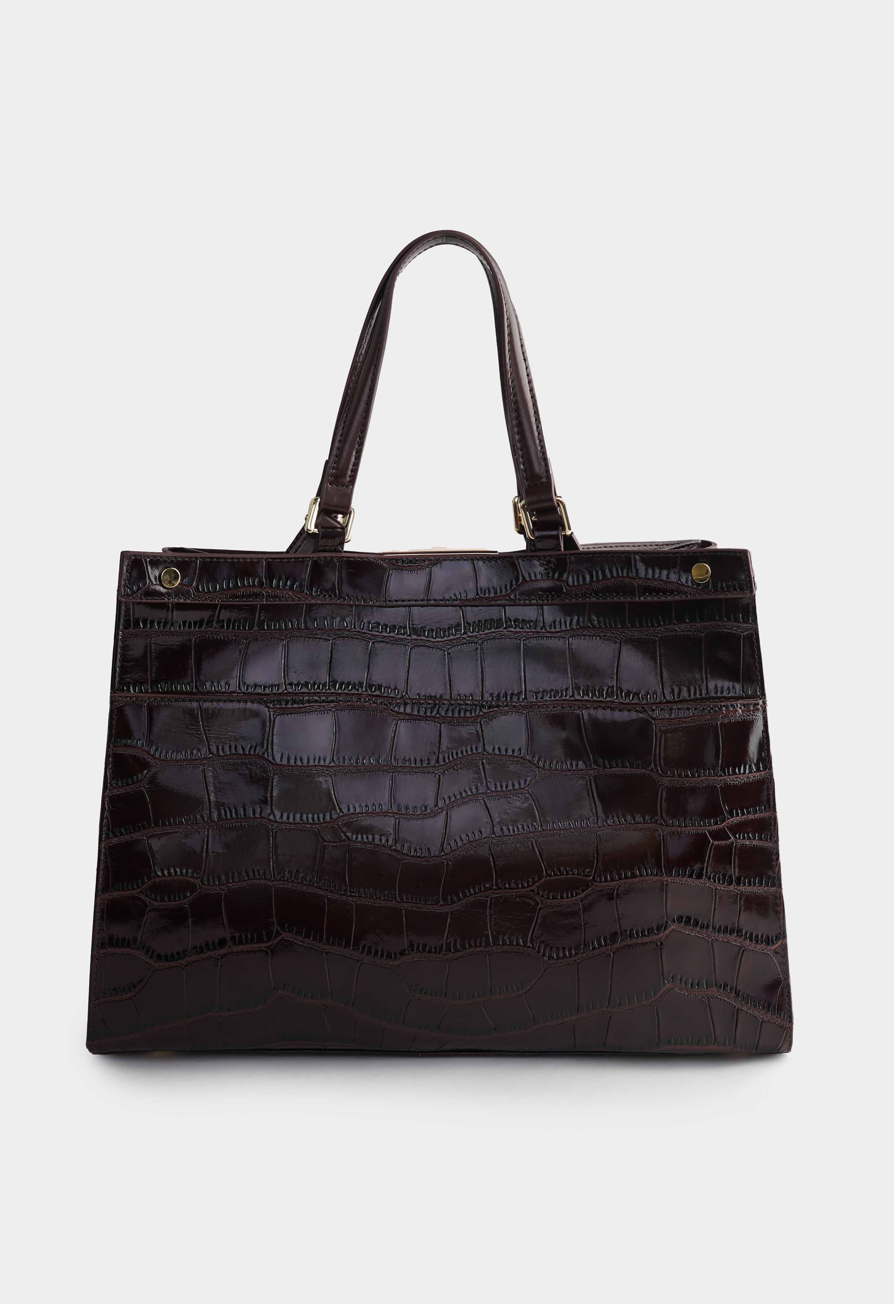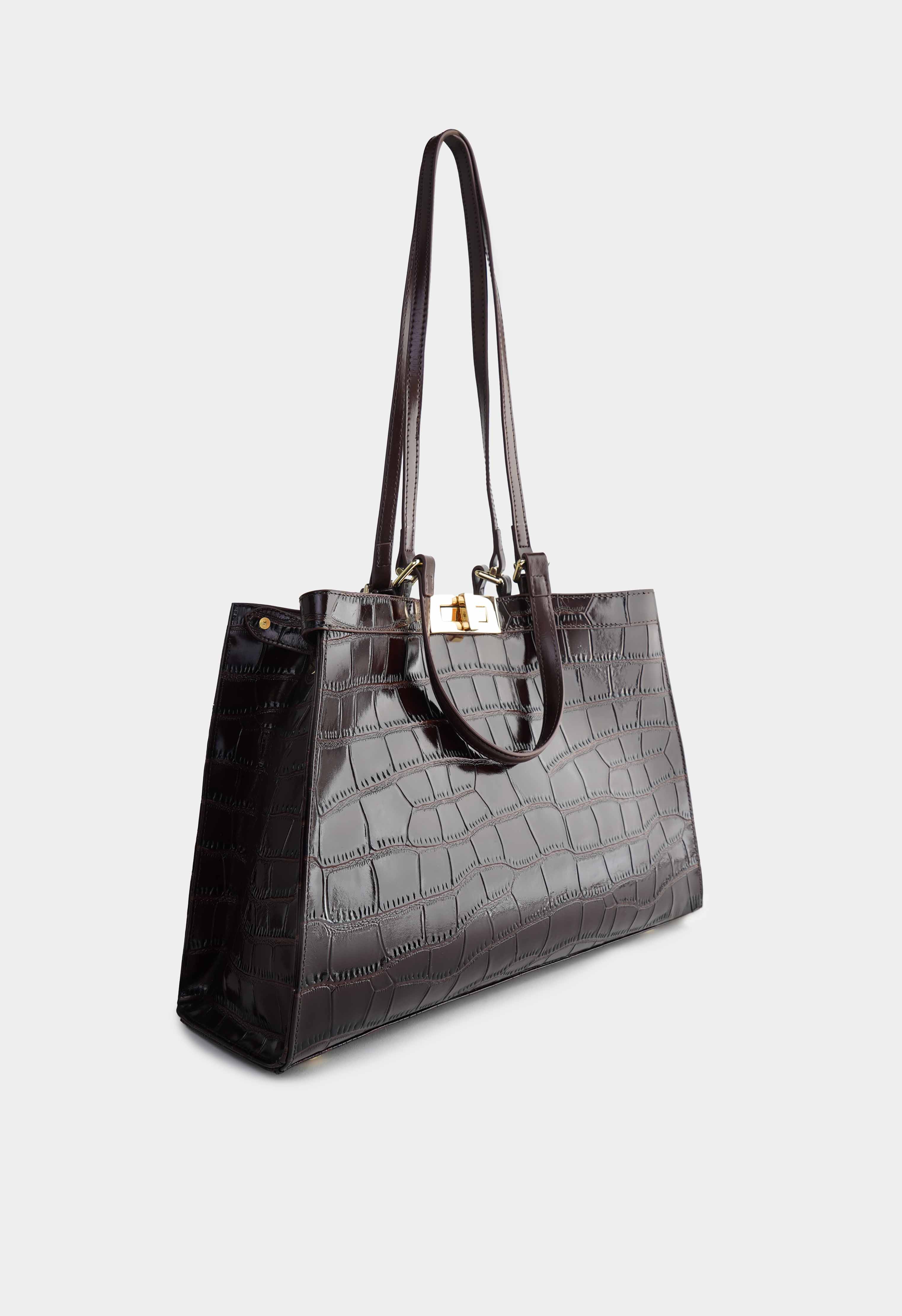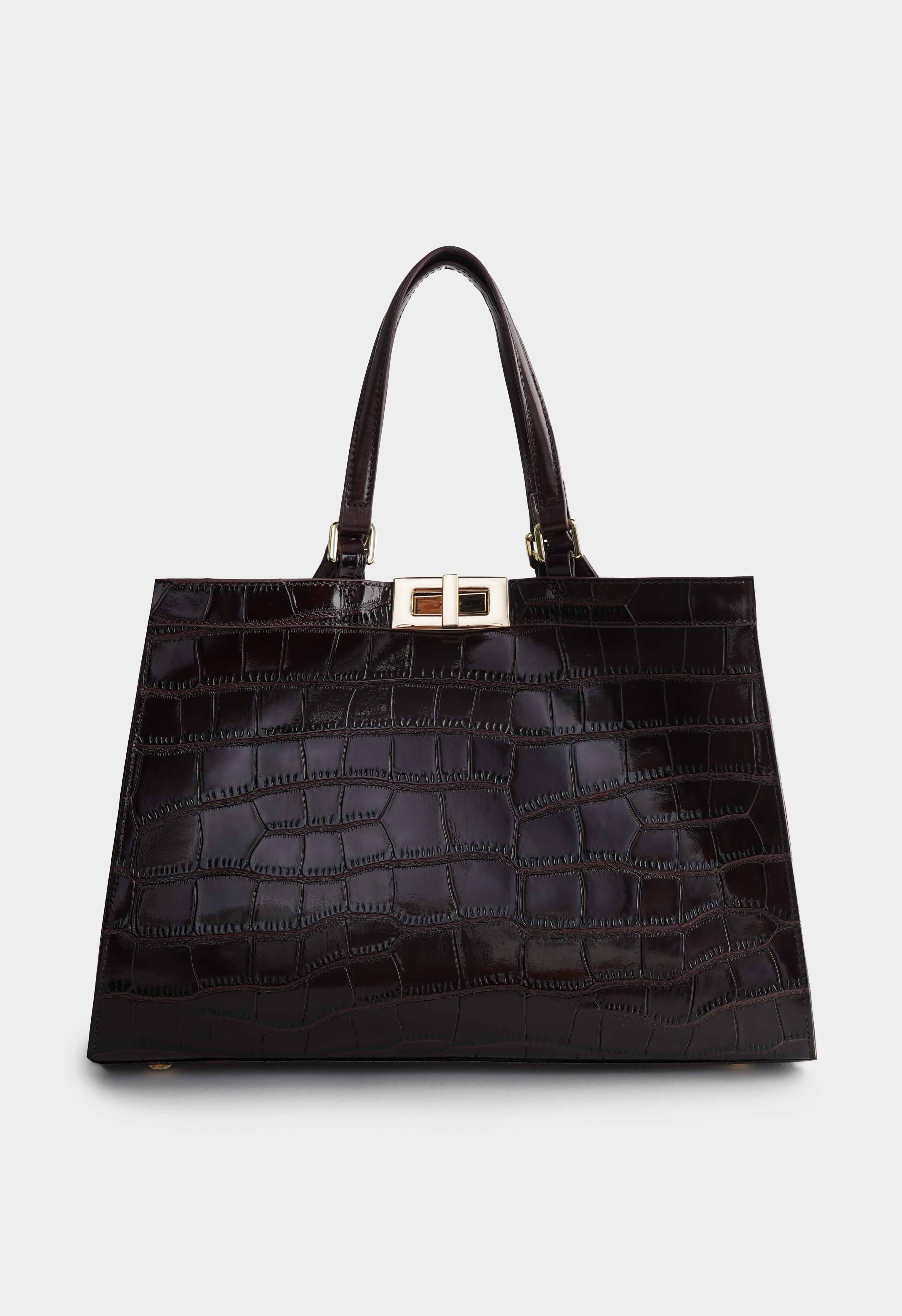 Коричневая сумка из натуральной кожи с выразительной фактурой выглядит статусно и сразу добавляет образу заметный акцент. Аккуратная пряжка и золотая фурнитура подчеркивают строгую форму и делают модель еще более эффектной. Продуманная организация внутри: четыре кармана помогают разложить документы, телефон и мелочи по местам, а снаружи предусмотрен отдельный карман для быстрого доступа к самому важному. Четыре ручки разной длины дают свободу носки – удобно держать в руке, носить на предплечье или на плече, подстраивая сумку под одежду и планы на день.