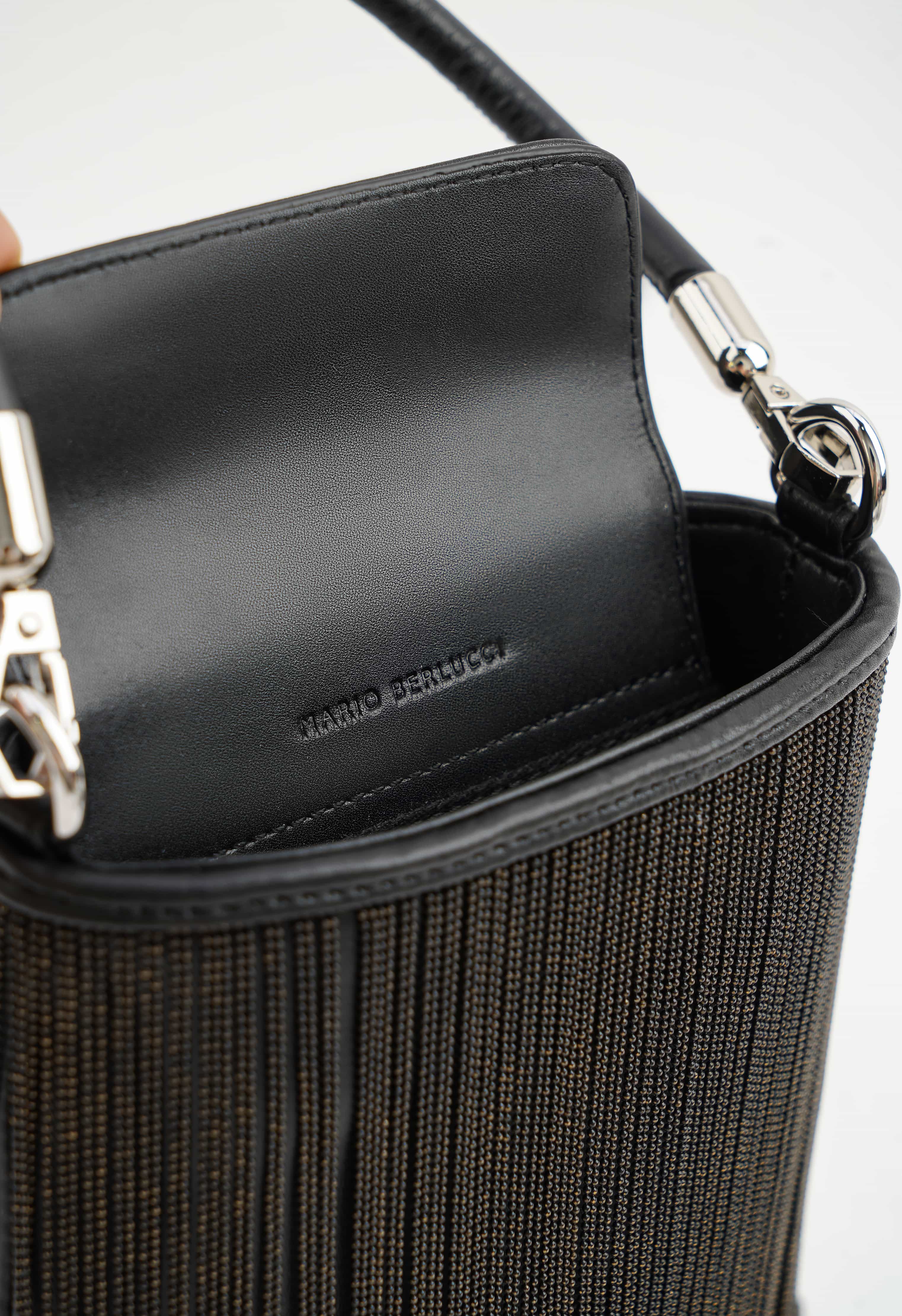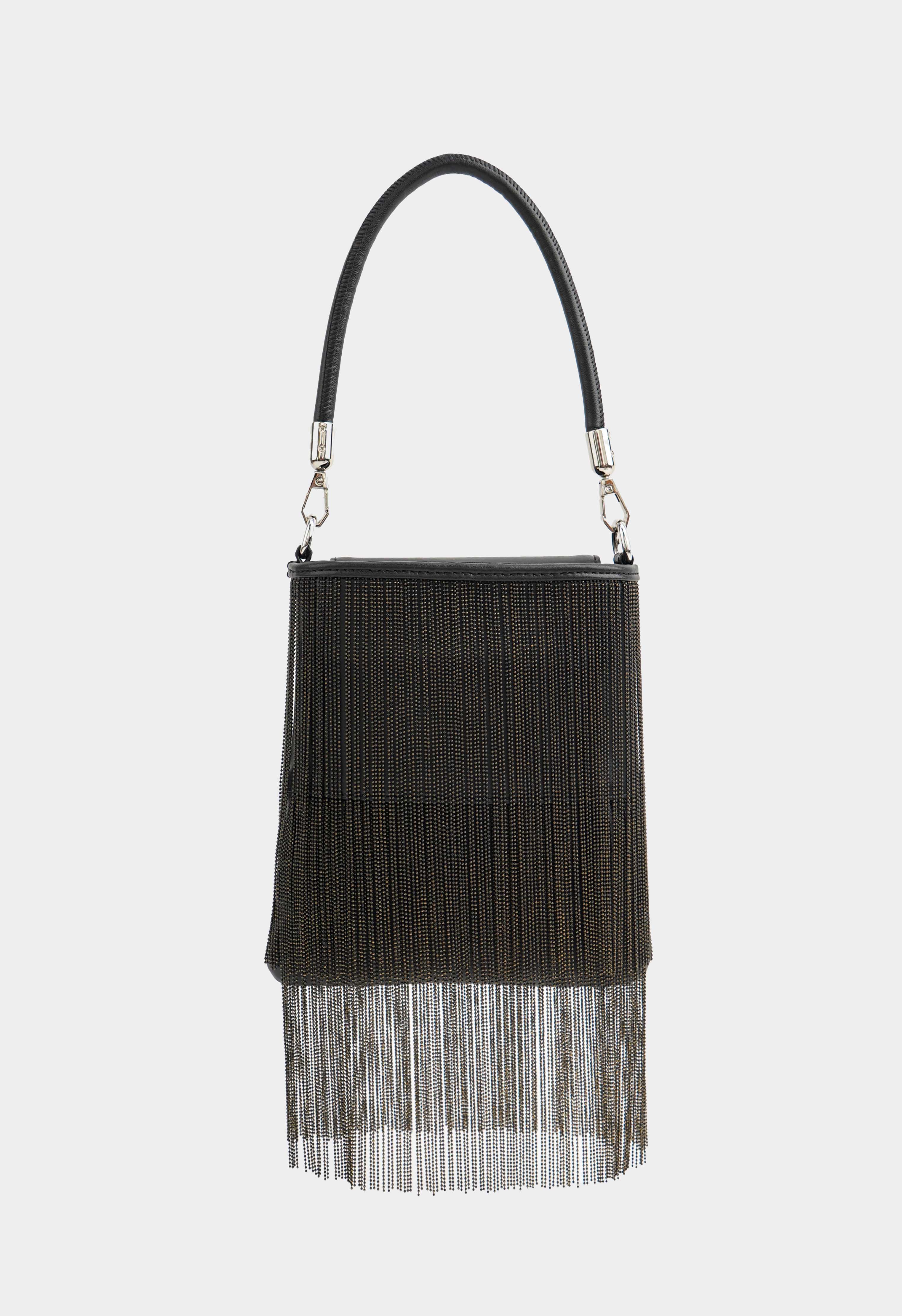 Сумка из черной натуральной кожи с бахромой – эффектный аксессуар, который добавляет образу движения и настроения: съемная ручка позволяет менять стиль носки, а плечевой ремень в комплекте делает ее удобной для города и вечера. Клапан аккуратно закрывает сумку, серебряная фурнитура подчеркивает современный характер модели и красиво сочетается с базовым черным оттенком.