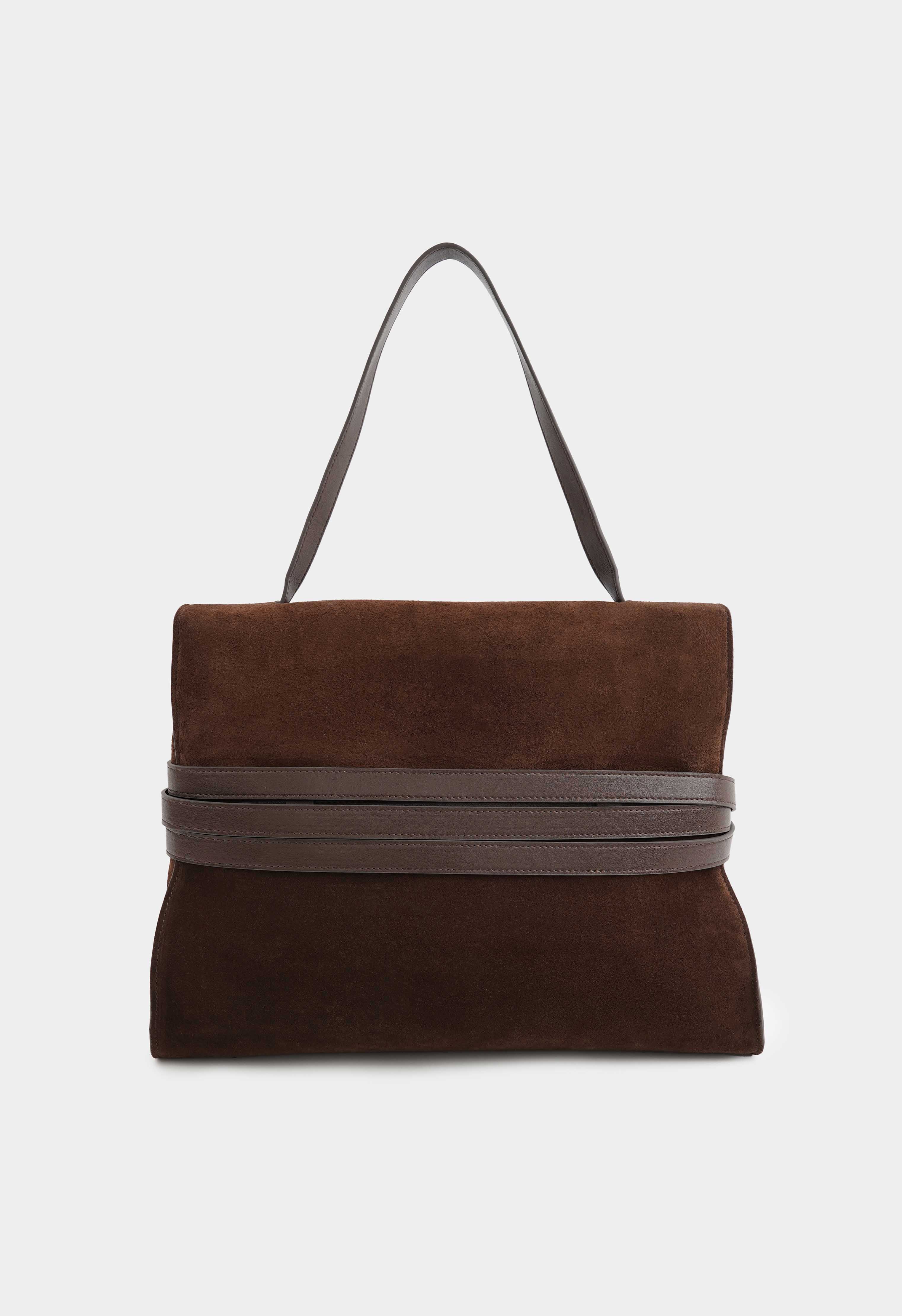 Большая коричневая сумка из натуральной замши – эффектный акцент в гардеробе и идеальный формат на каждый день: благородная фактура, стильный силуэт и один удобный плечевой ремень обеспечивают комфорт в носке, а золотая фурнитура добавляет образу дорогой блеск. Застежка на кнопке надежно закрывает сумку, внутри – два кармана для телефона, ключей и мелочей, чтобы все было аккуратно организовано и всегда под рукой.