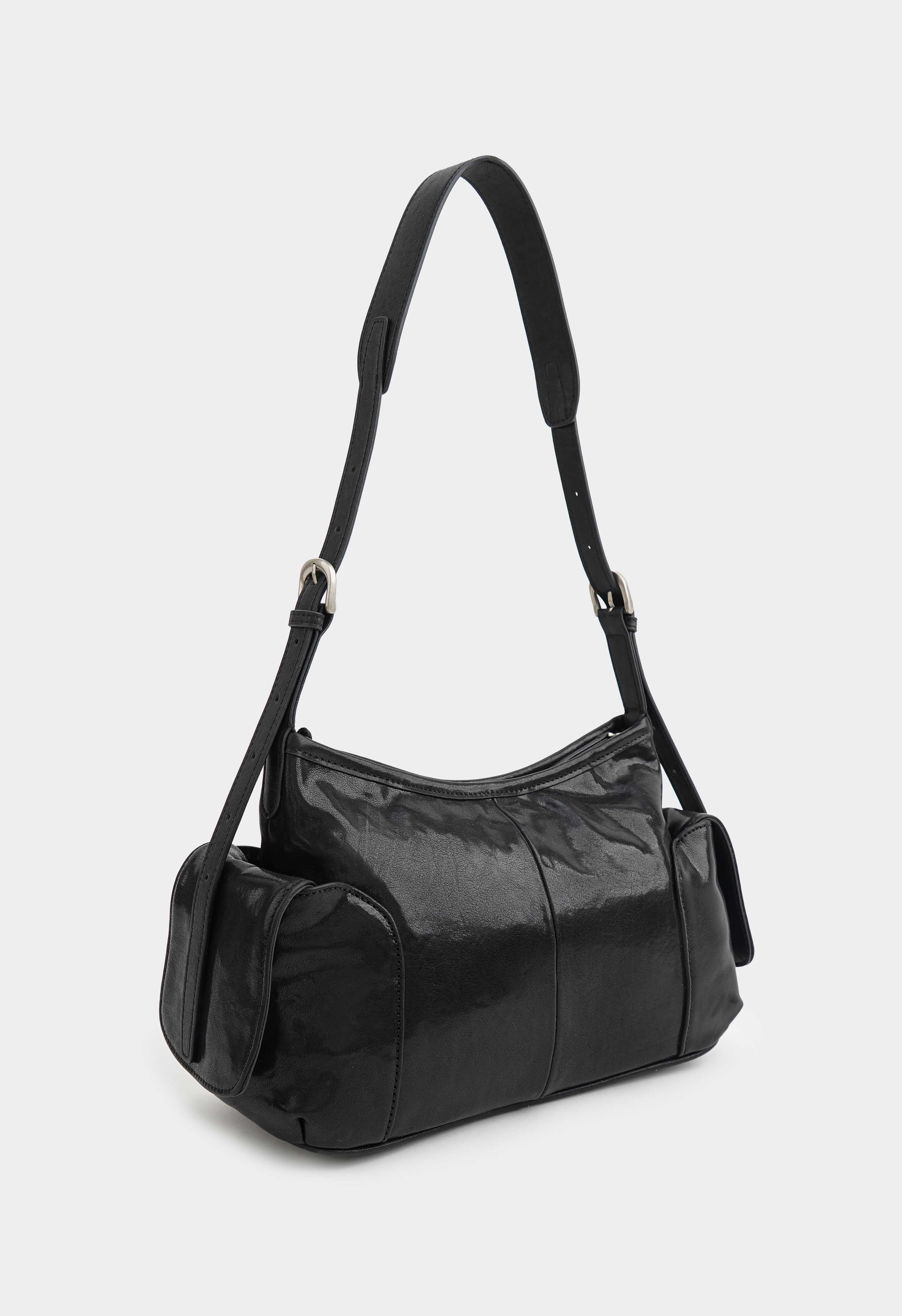 Стильная черная сумка из натуральной кожи – практичная и эффектная модель на каждый день: регулируемая ручка позволяет настроить идеальную посадку, аккуратная молния надежно закрывает содержимое, а серебряная фурнитура добавляет современный холодный блеск. Внутри предусмотрены два удобных кармана для мелочей, в то время как два внешних кармана помогают держать под рукой все самое нужное – красиво, функционально и максимально комфортно.