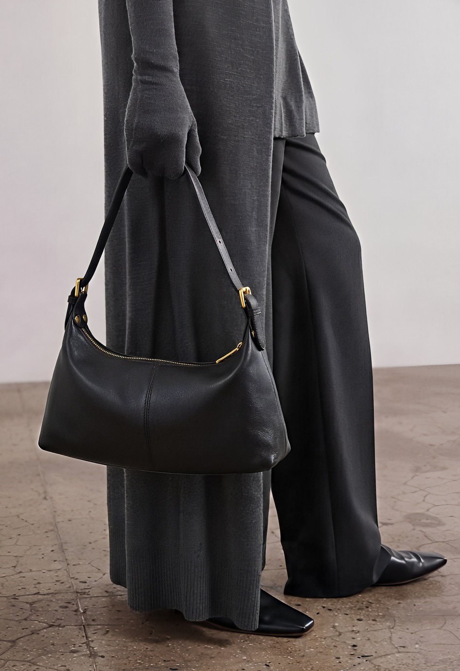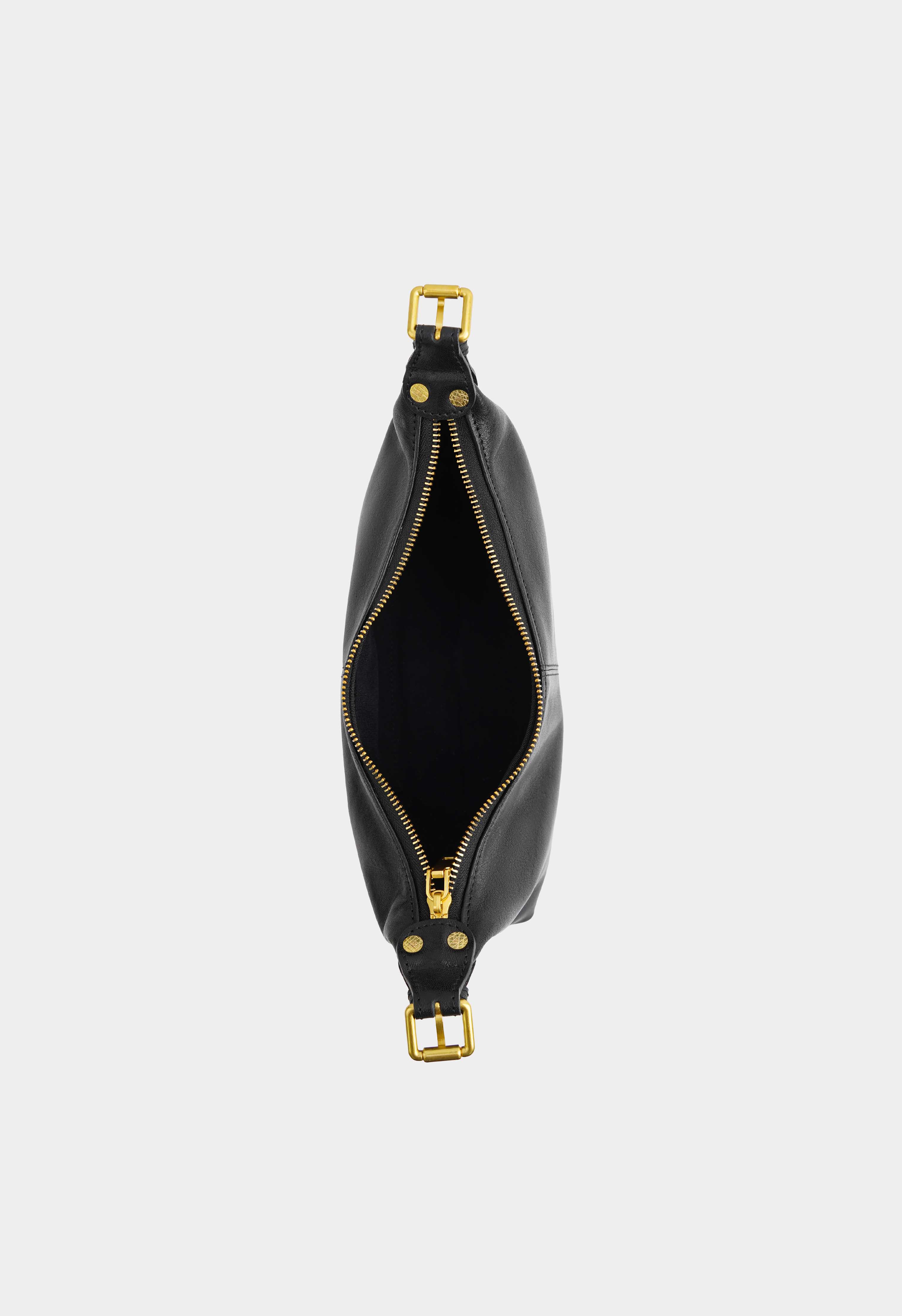 Стильная черная сумка из натуральной кожи – идеальный баланс базы и игривой детали: плечевой ремень удобно ложится на плечо, съемная ручка позволяет менять посадку и настроение образа, а обвес из кожаной тесьмы со смайликом добавляет характер и делает модель особенной. Золотая фурнитура красиво подчеркивает черную кожу, молния надежно закрывает сумку, в то время как два внутренних кармана помогают держать мелочи в порядке.