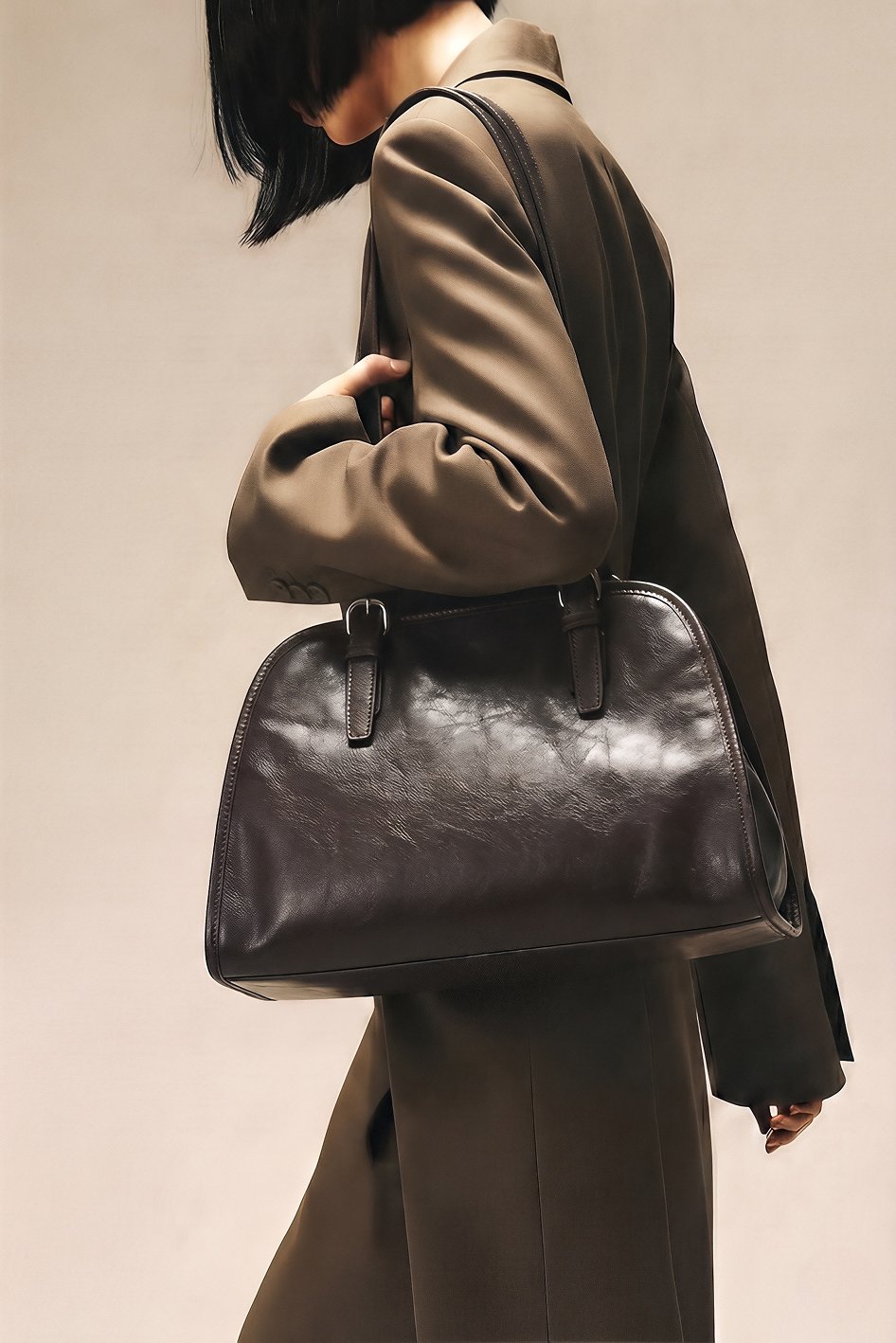 Сумка коричневого цвета из натуральной кожи – универсальная модель на каждый день: две съемные ручки позволяют менять стиль и посадку, а плечевой ремень в комплекте дает максимум свободы в носке. Застежка на магнит закрывается быстро и надежно, фурнитура в оттенке металлик добавляет современный акцент, внутри – два кармана для аккуратной организации мелочей, внешний карман выручает, когда нужно быстро достать самое нужное.