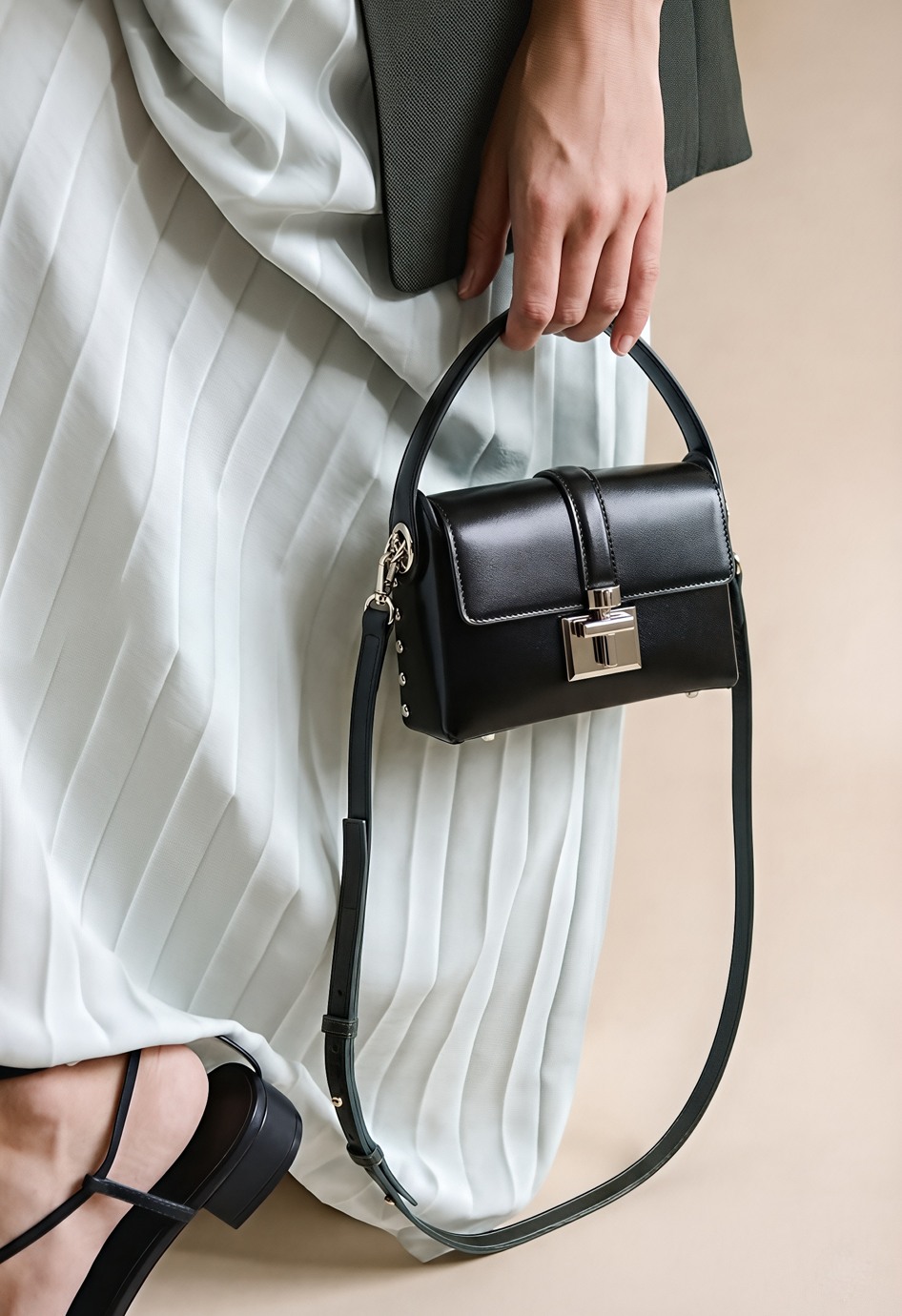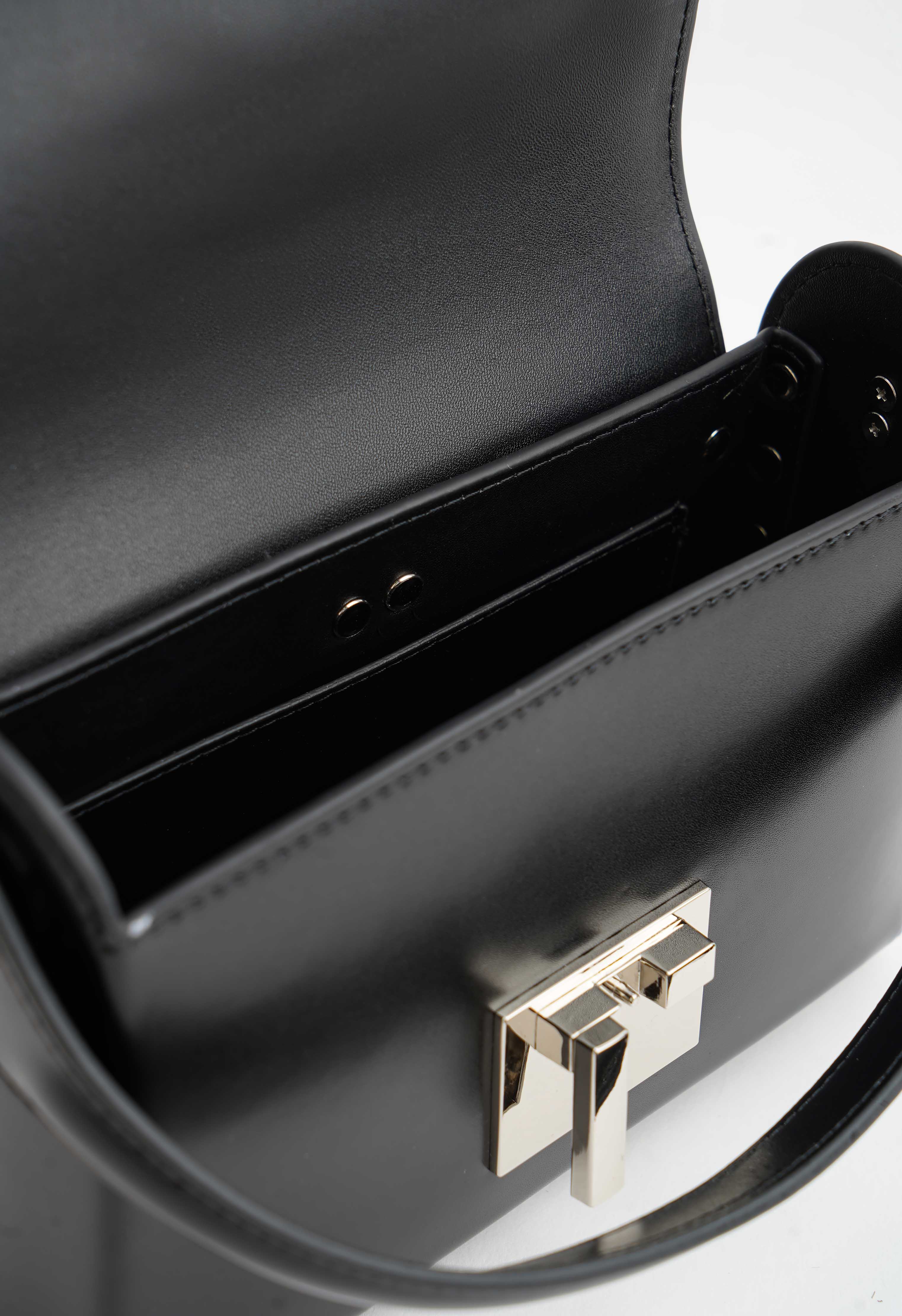 Черная сумка из натуральной кожи – безупречная база на каждый день с ноткой элегантности: плечевой ремень удобно садится на плечо, а лаконичный силуэт легко сочетается и с классическим, и с повседневным стилем. Акцентная серебряная фурнитура и стильная пряжка делают модель выразительной, при этом не перегружая образ. Внутри предусмотрены два кармана для комфортного доступа к самому необходимому.