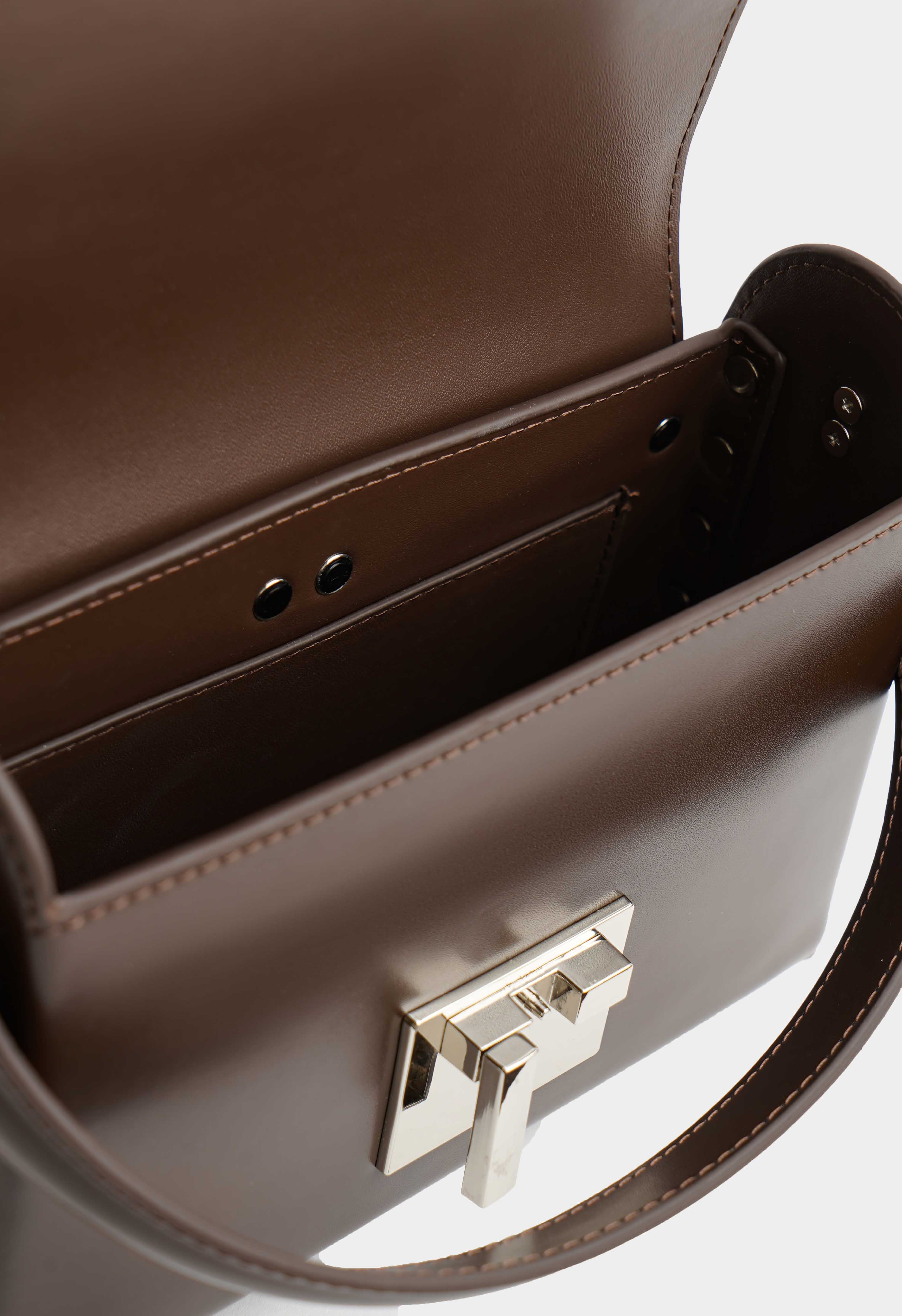 Коричневая сумка из натуральной кожи – безупречная база на каждый день с ноткой элегантности: плечевой ремень удобно садится на плечо, а лаконичный силуэт легко сочетается и с классическим, и с повседневным стилем. Акцентная серебряная фурнитура и стильная пряжка делают модель выразительной, при этом не перегружая образ. Внутри предусмотрены два кармана для комфортного доступа к самому необходимому.