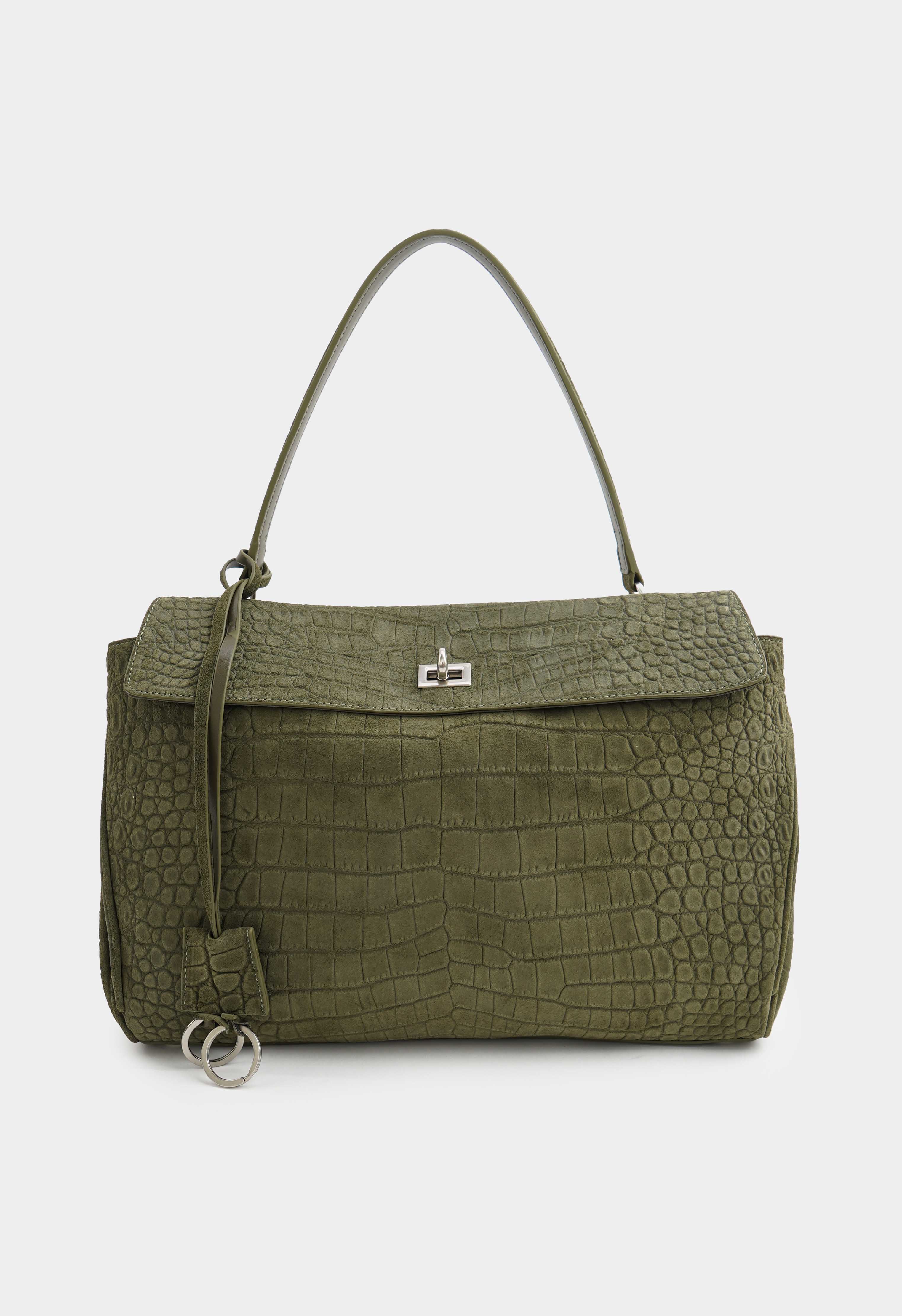 Зеленая сумка из натуральной замши – стильный акцент, который освежает любой образ и выглядит по-настоящему благородно: плечевой ремень удобно садится на плечо, а обвес из кожаной тесьмы добавляет характер и модную деталь. Серебряная фурнитура и аккуратная пряжка подчеркивают современный стиль модели, внутри предусмотрен один карман для мелочей, а два внешних кармана помогают держать под рукой всё самое нужное.