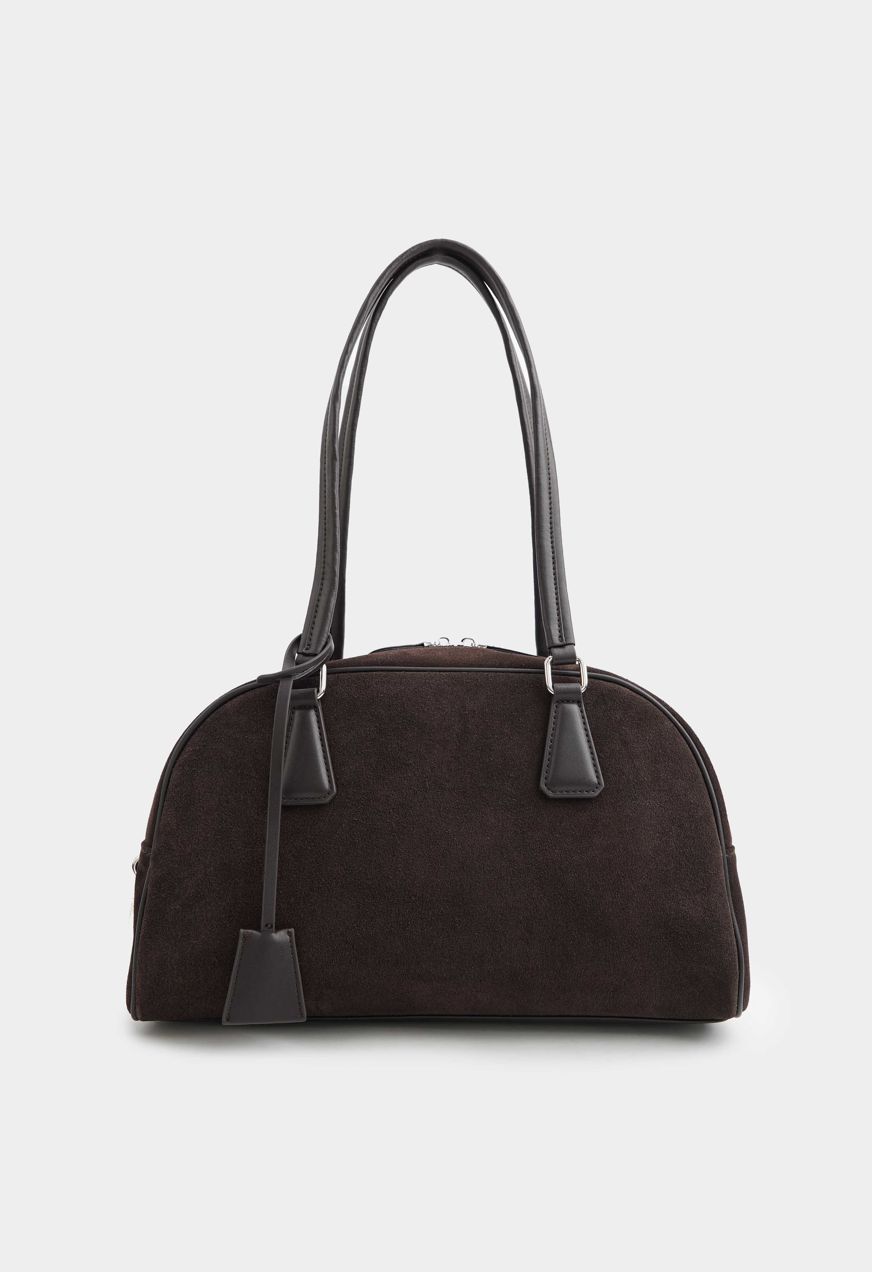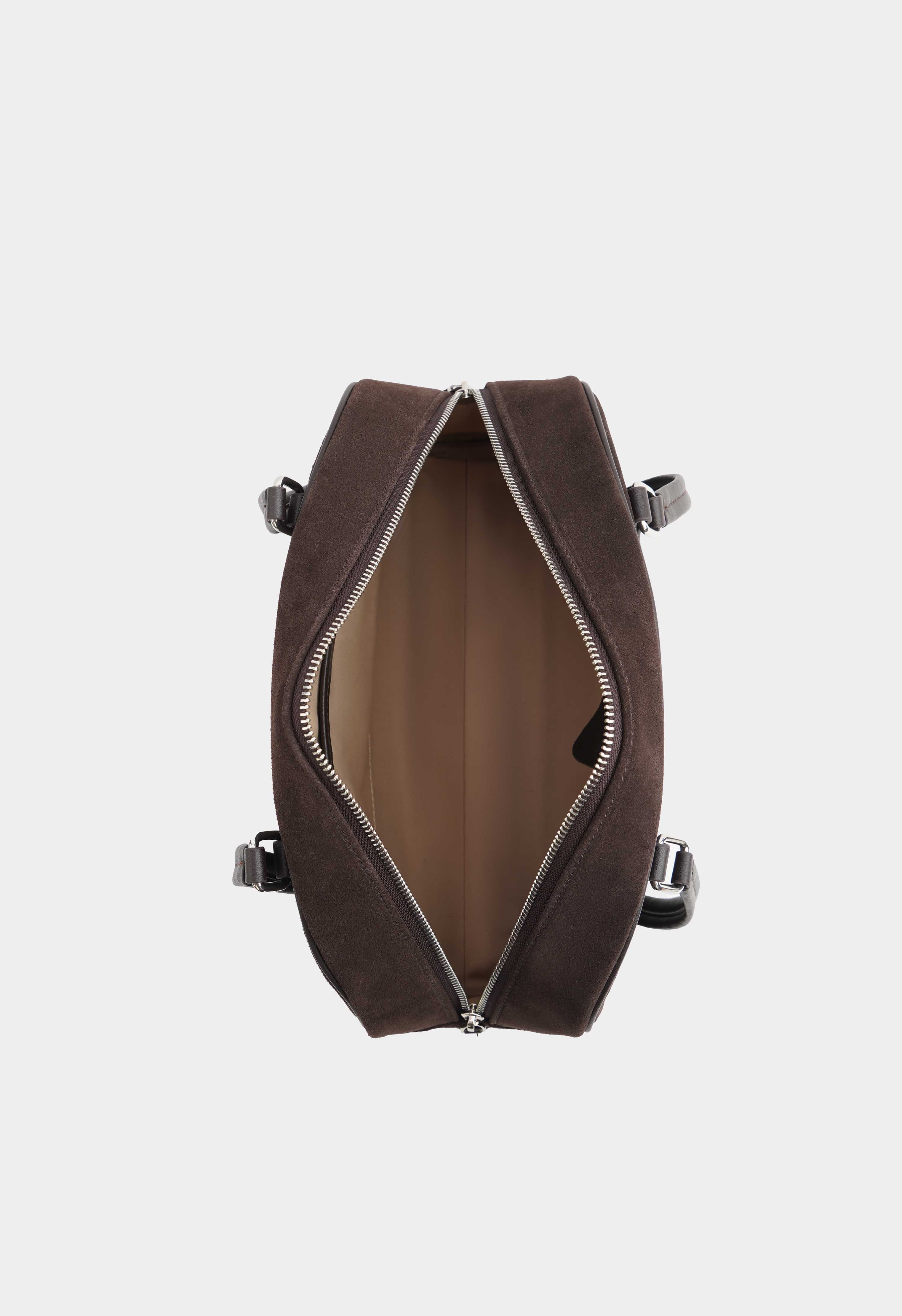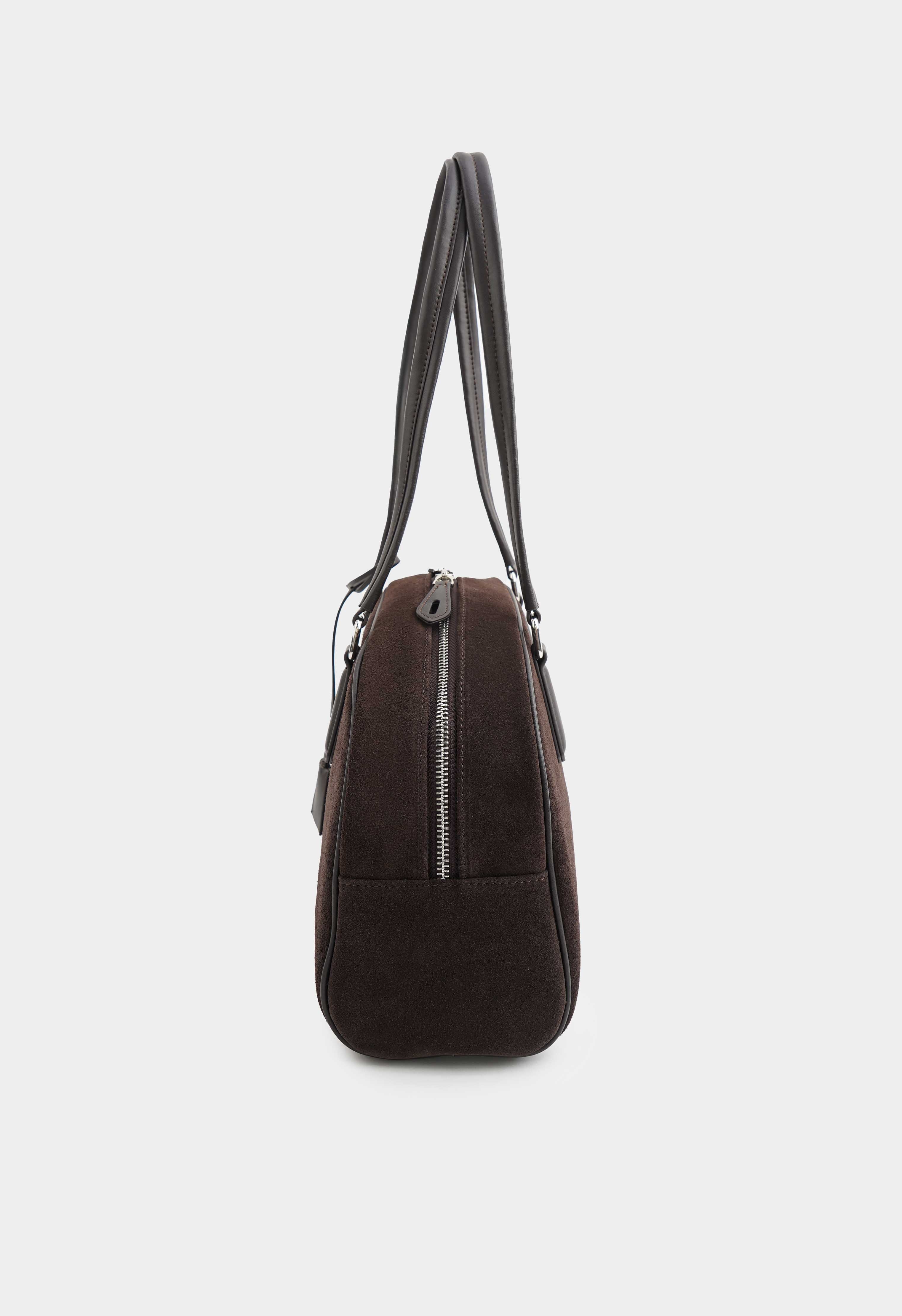 Замшевая сумка коричневого цвета – уютный акцент на каждый день: натуральная замша выглядит благородно и приятно ощущается в руках, а обвес из кожаной тесьмы добавляет характер и завершает образ. Серебряная фурнитура красиво контрастирует с глубоким коричневым оттенком, молния надежно фиксирует содержимое, в то время как два внутренних кармана помогают держать телефон и мелочи в порядке.