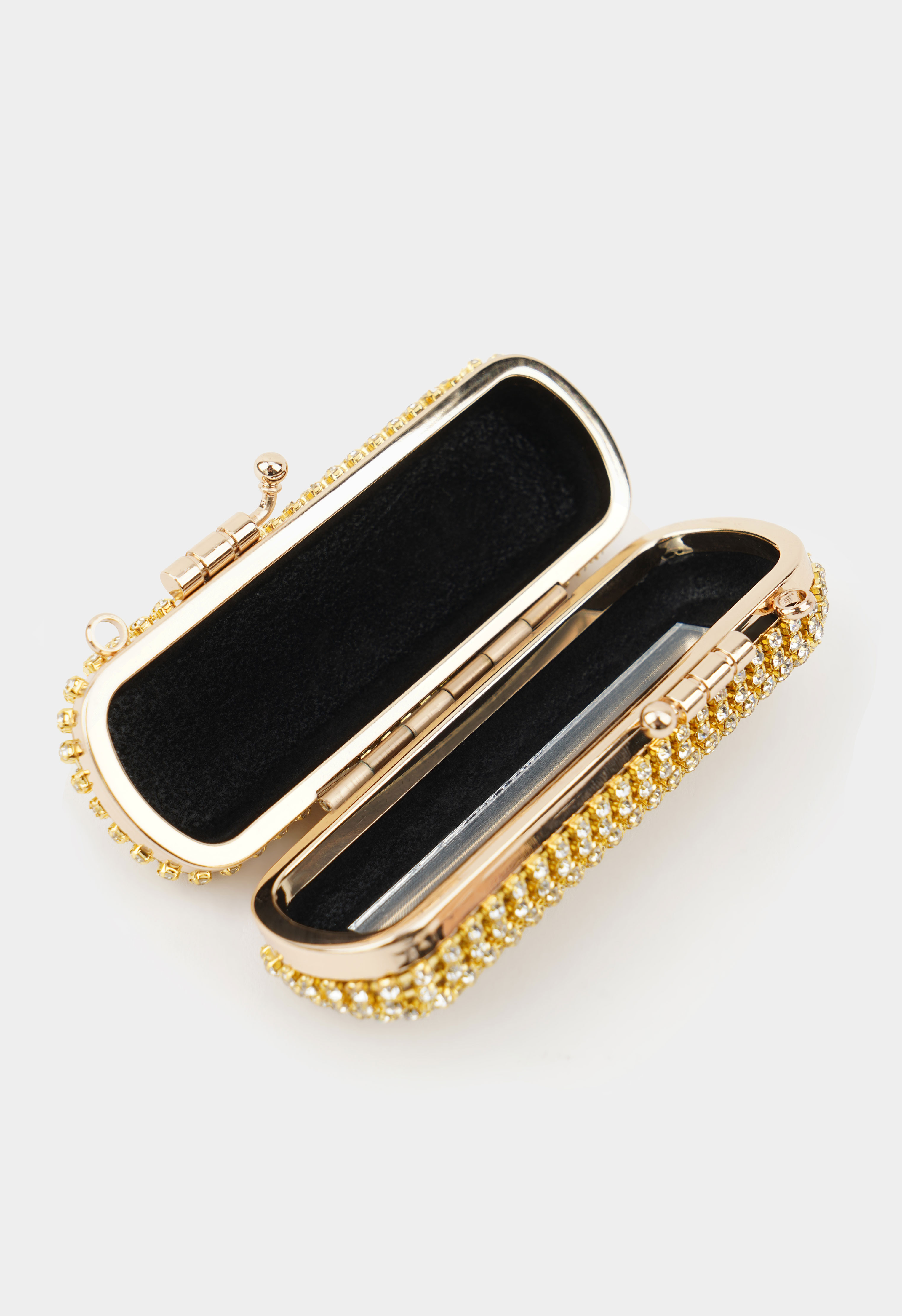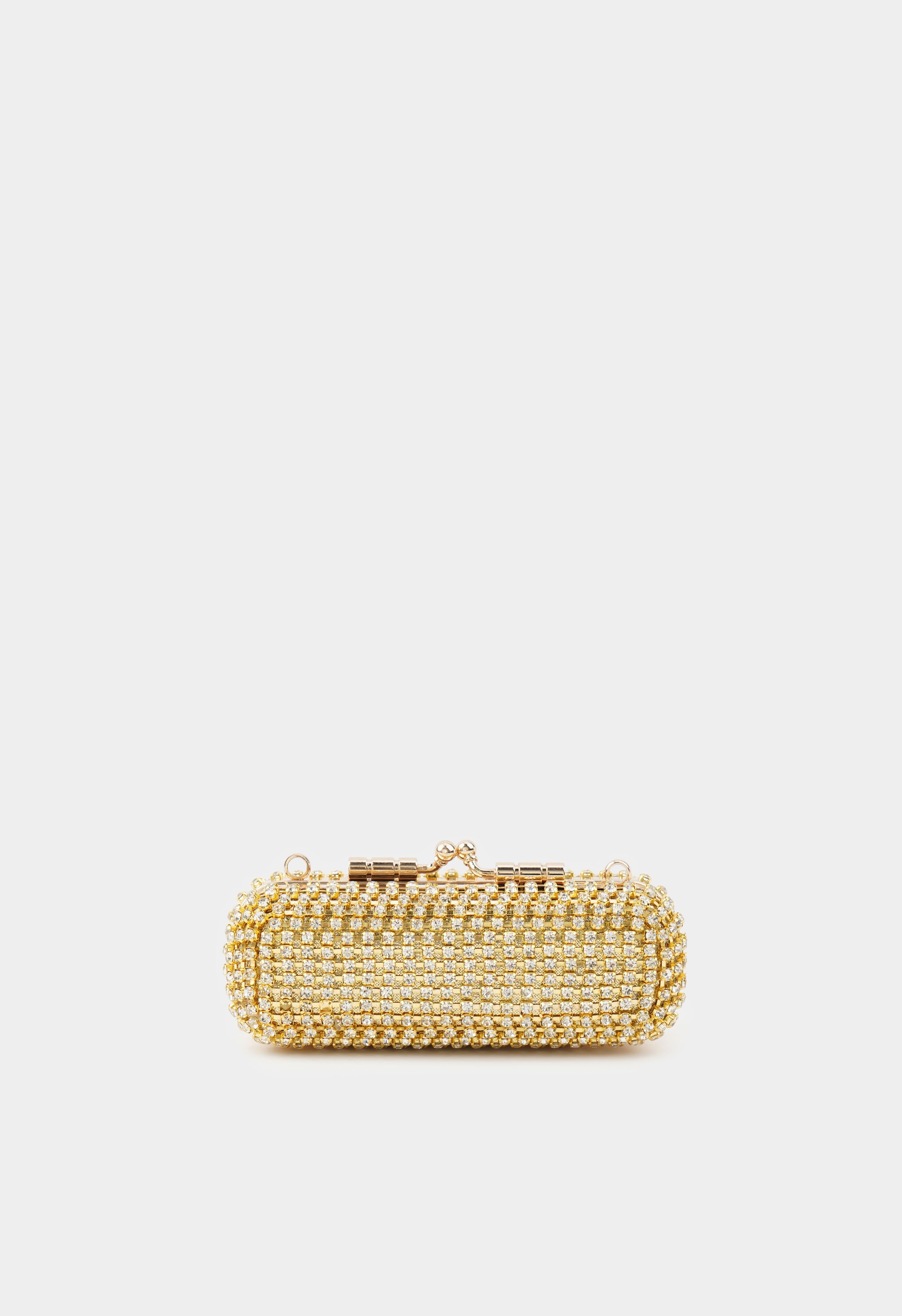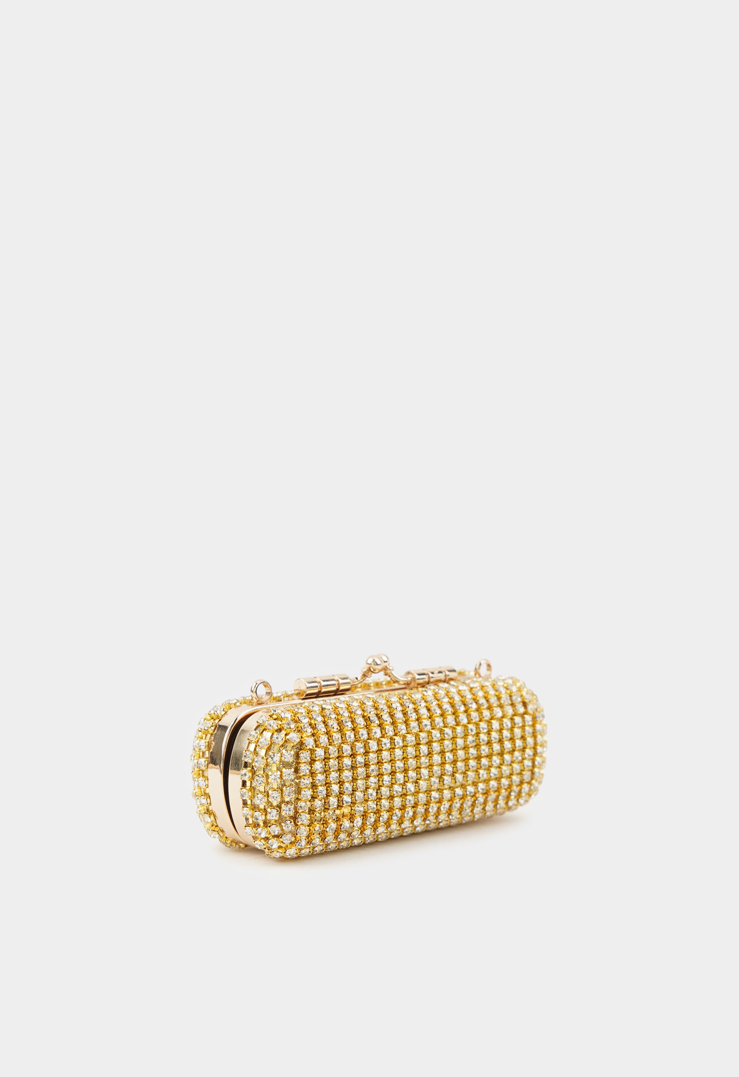 Роскошный золотой клатч, полностью усыпанный сияющими стразами, создан для тех случаев, когда хочется блистать: он эффектно переливается при любом свете и моментально превращает даже самый базовый образ в вечерний. Жесткая форма держит идеальный вид, а защелкивающаяся застежка сохраняет содержимое в безопасности. В комплекте есть золотая цепочка, чтобы вы могли носить клатч на плече или в руках, оставаясь свободной и уверенной весь вечер.