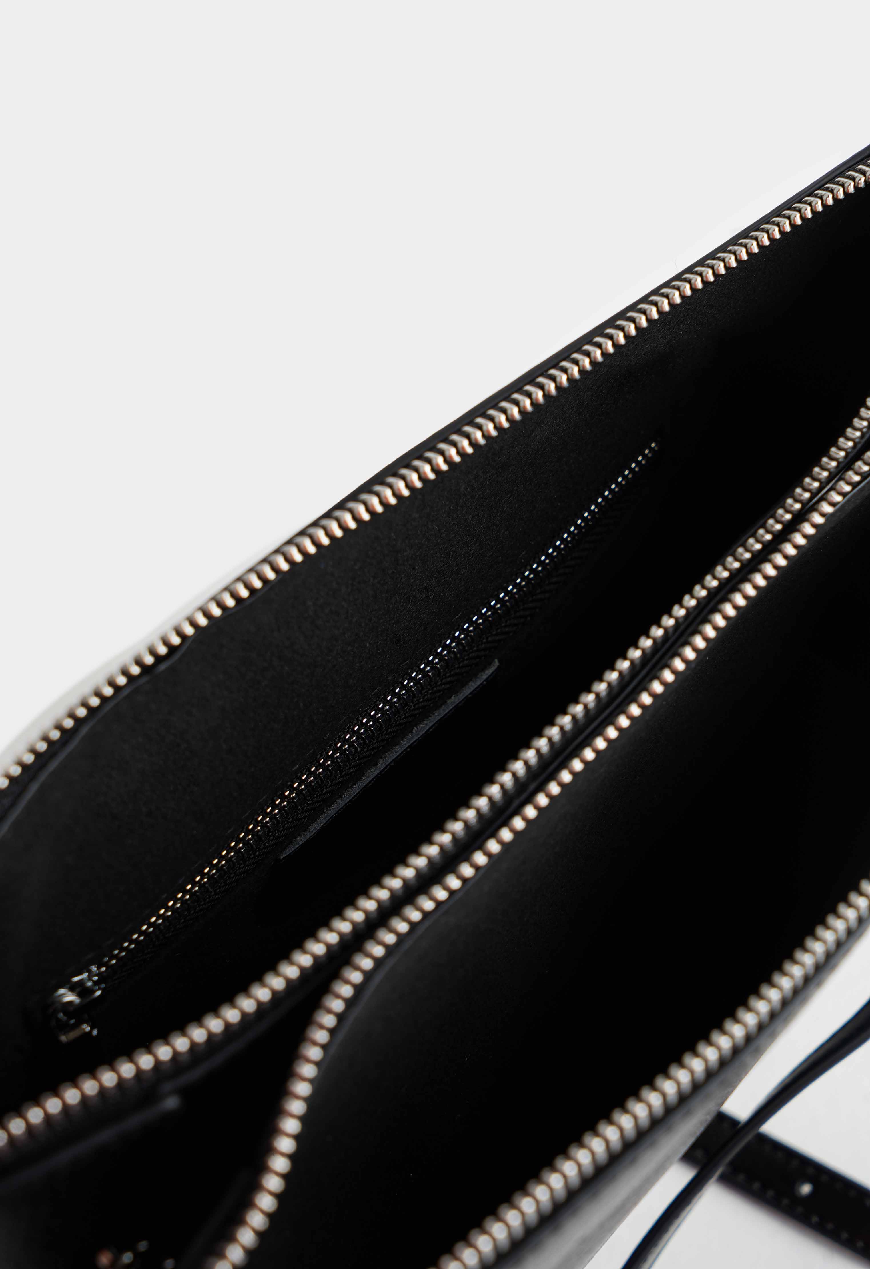 Сумка черного цвета из натуральной кожи – лаконичная и очень универсальная модель, которая выглядит аккуратно и дорого благодаря гладкой фактуре и чистым линиям. Молния надежно закрывает основное отделение, а серебряная фурнитура добавляет сдержанный современный блеск. Внутри предусмотрены два кармана, чтобы удобно разложить мелочи и поддерживать порядок. Плечевой ремень обеспечивает комфортную носку, а съемная ручка-цепочка позволяет быстро сменить настроение образа.