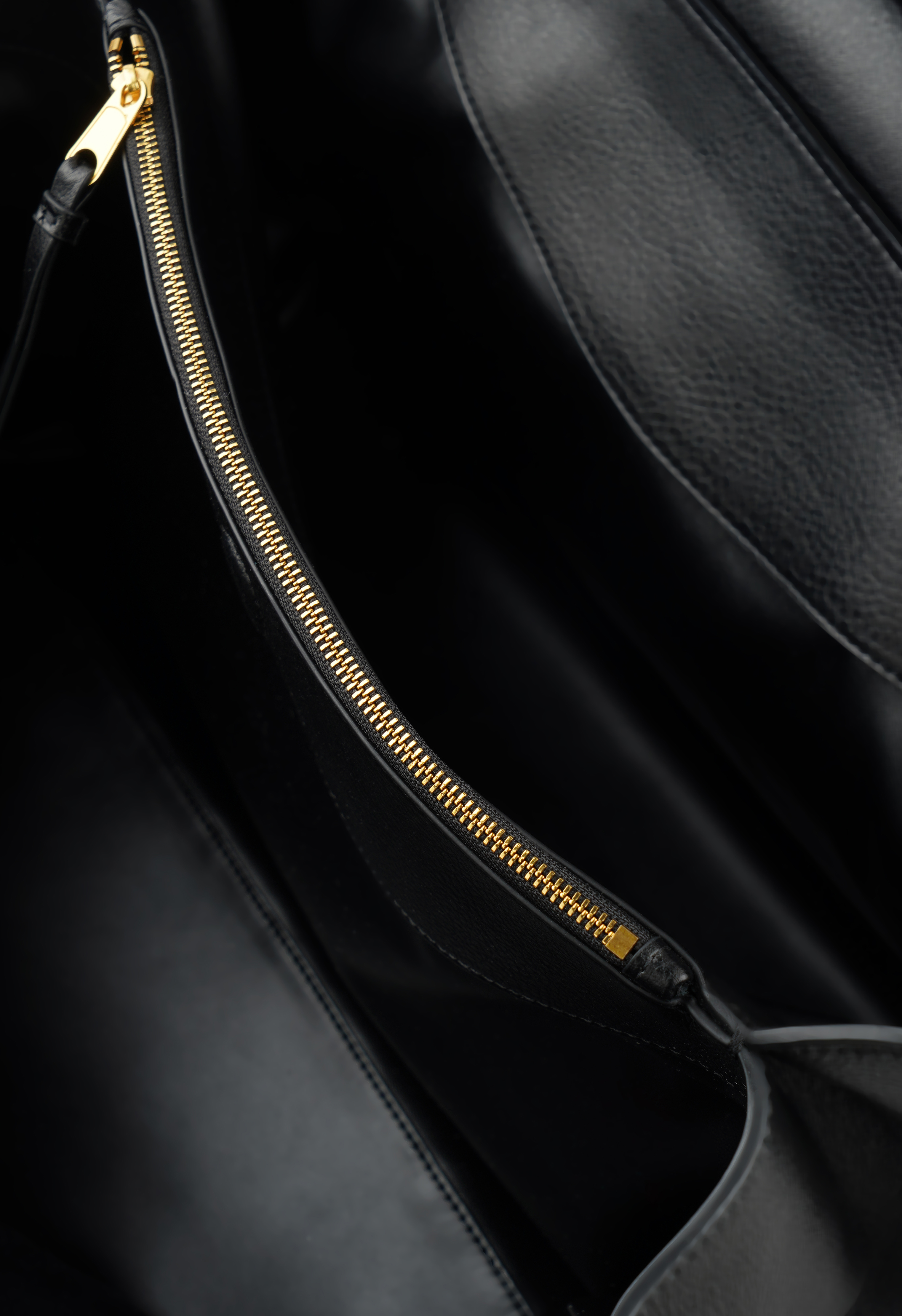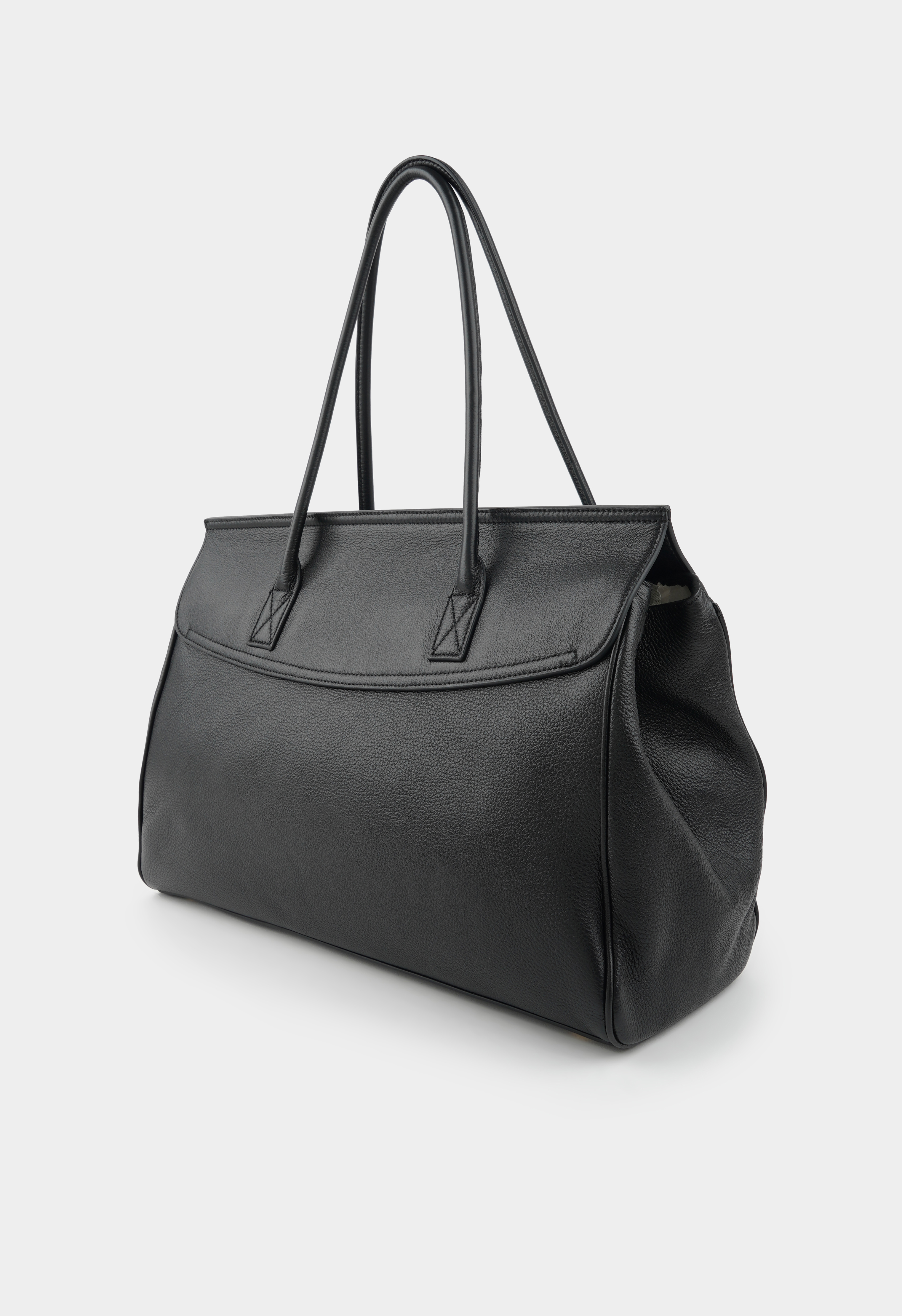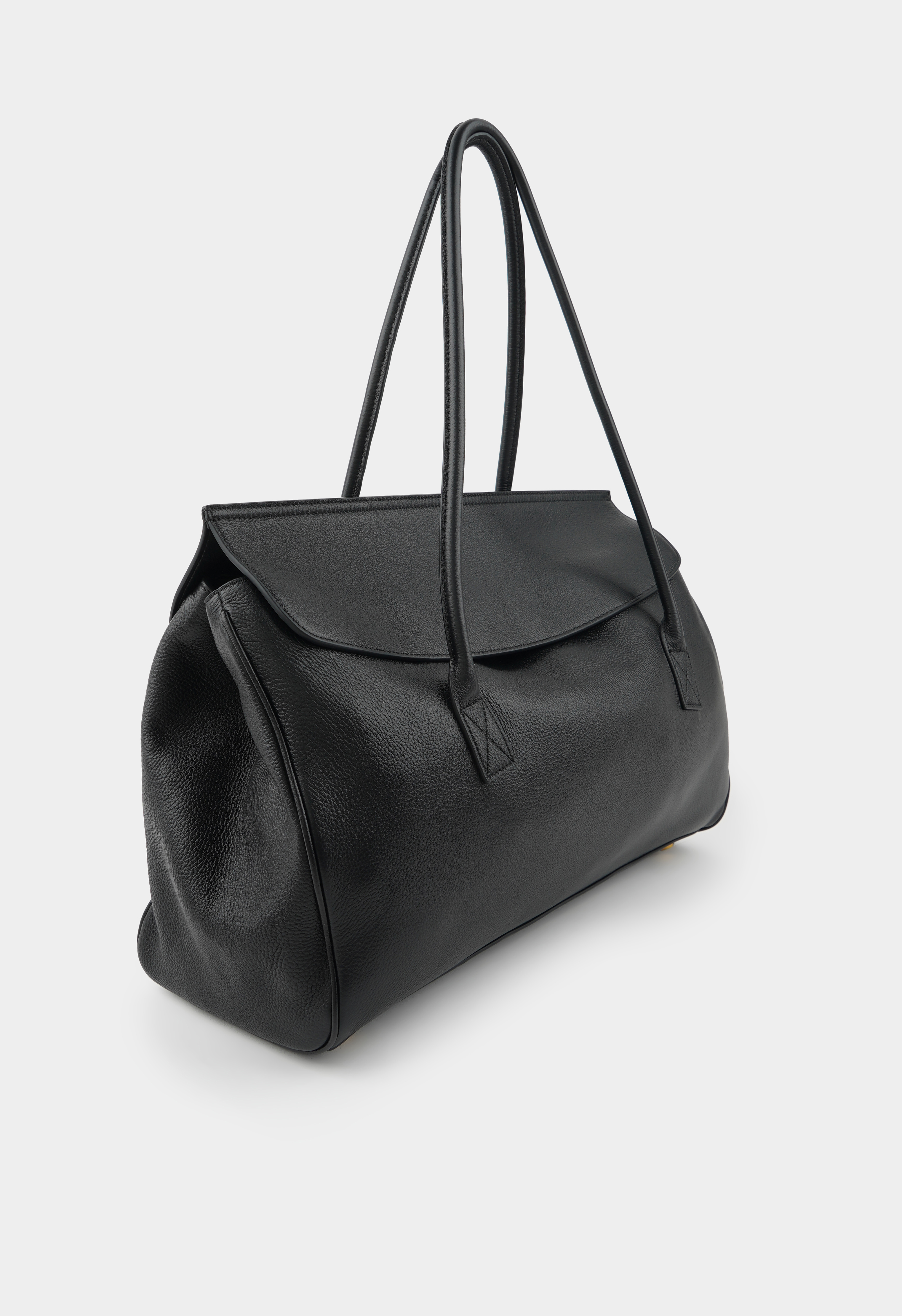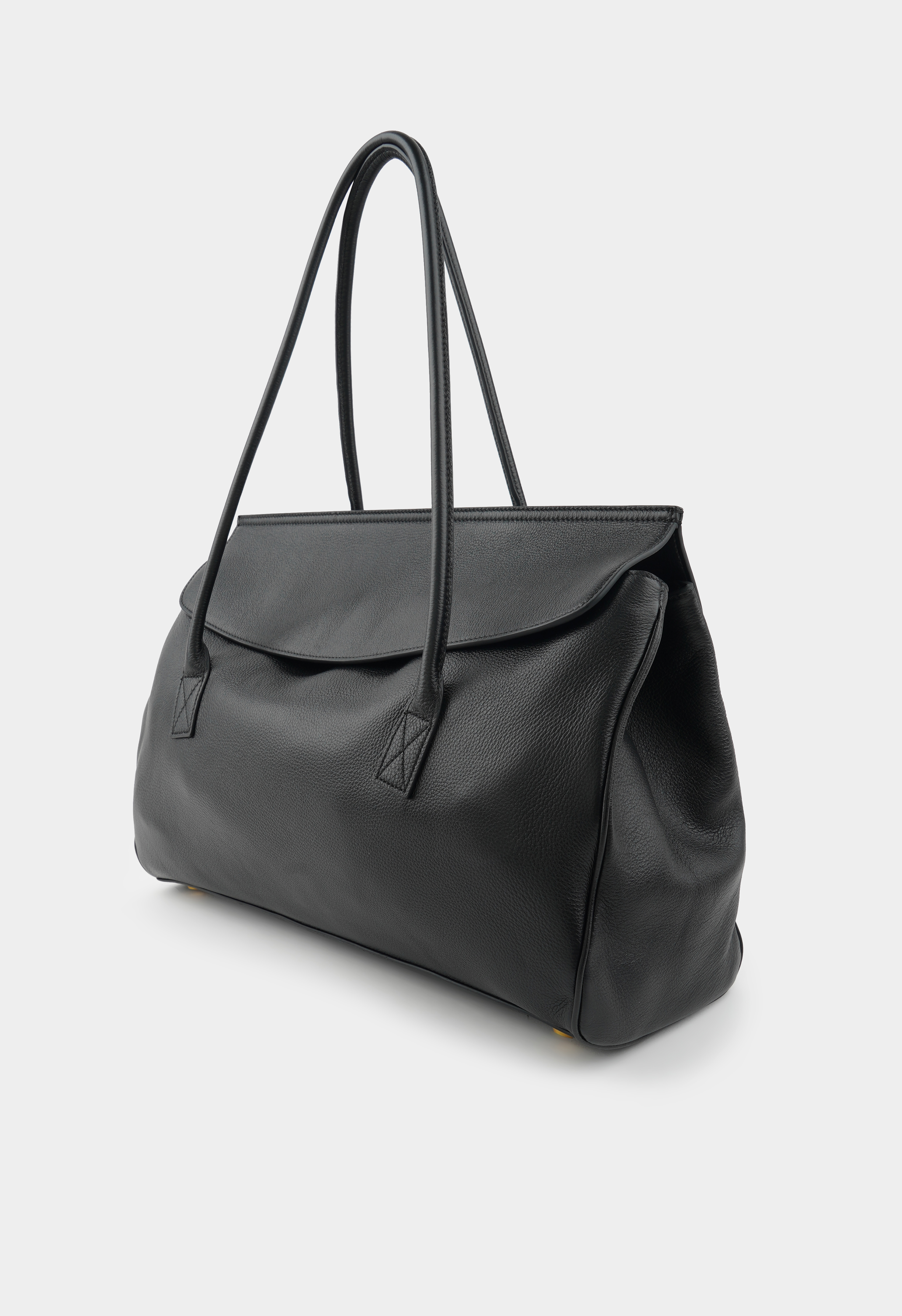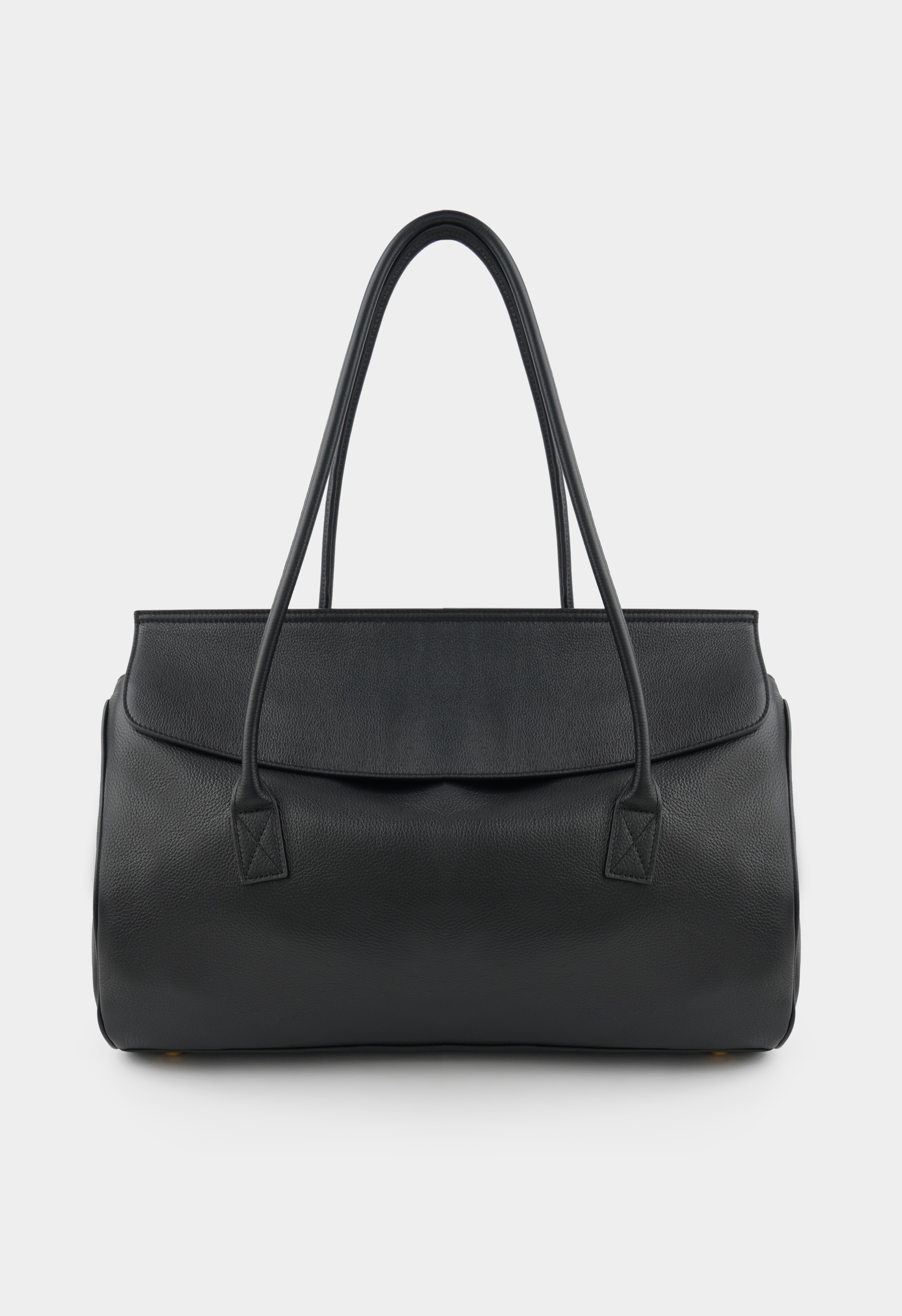 Большая сумка из натуральной кожи в глубоком черном цвете сочетает в себе стиль и функциональность. Продуманный дизайн с клапаном на магнитной застежке и золотой фурнитурой придает образу элегантность, а один внутренний карман помогает держать вещи в порядке. Вместительная и удобная модель легко справится с повседневными делами и при этом будет уместна на особых событиях, подчеркивая вашу уверенность и безупречный вкус.