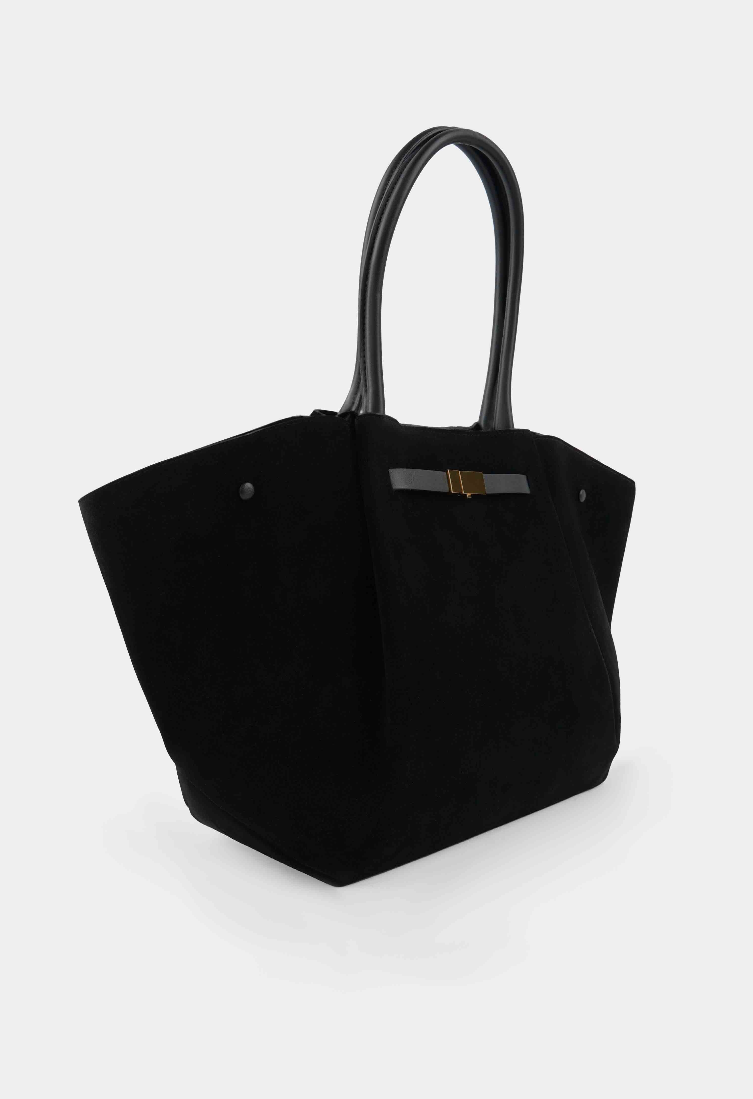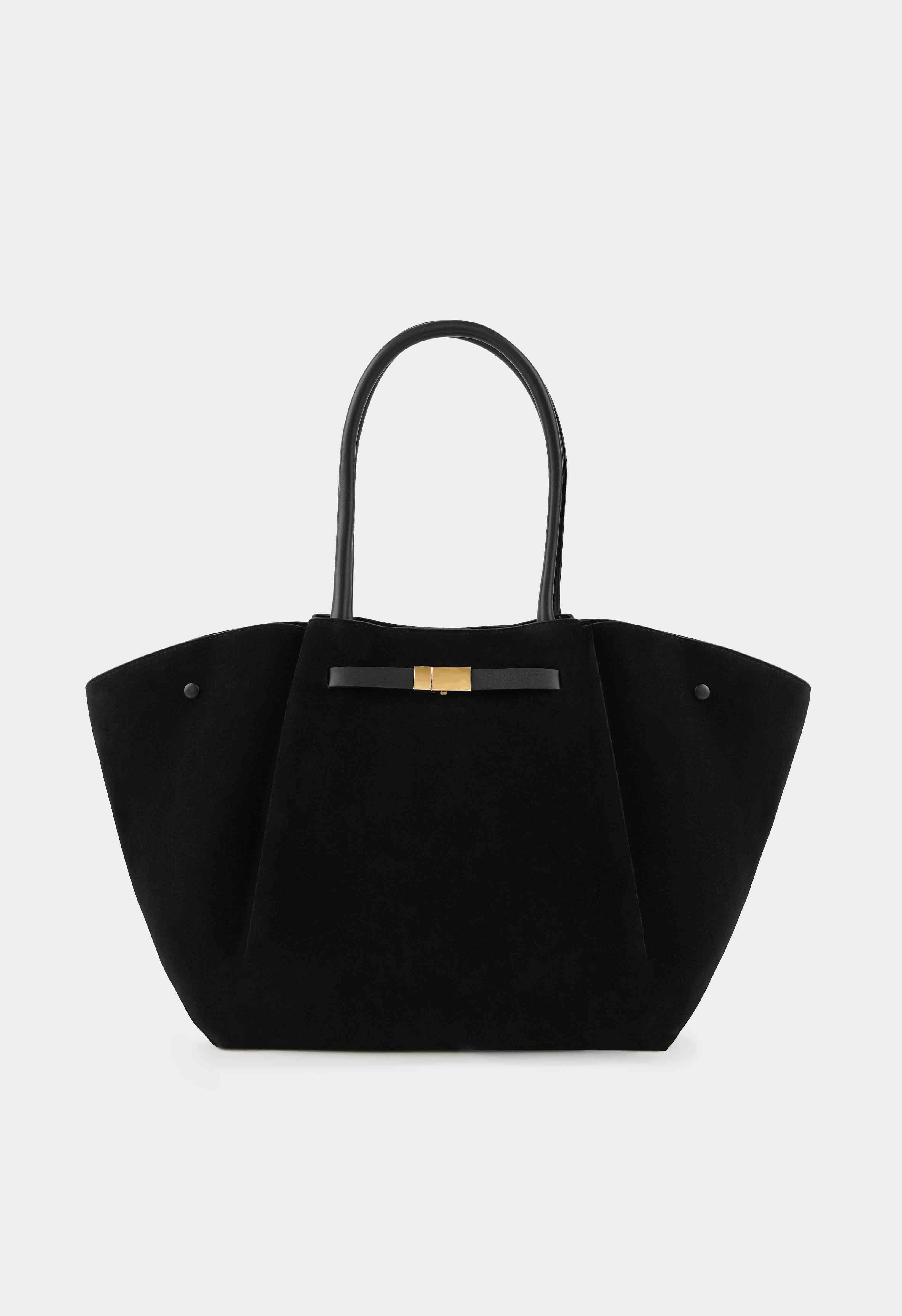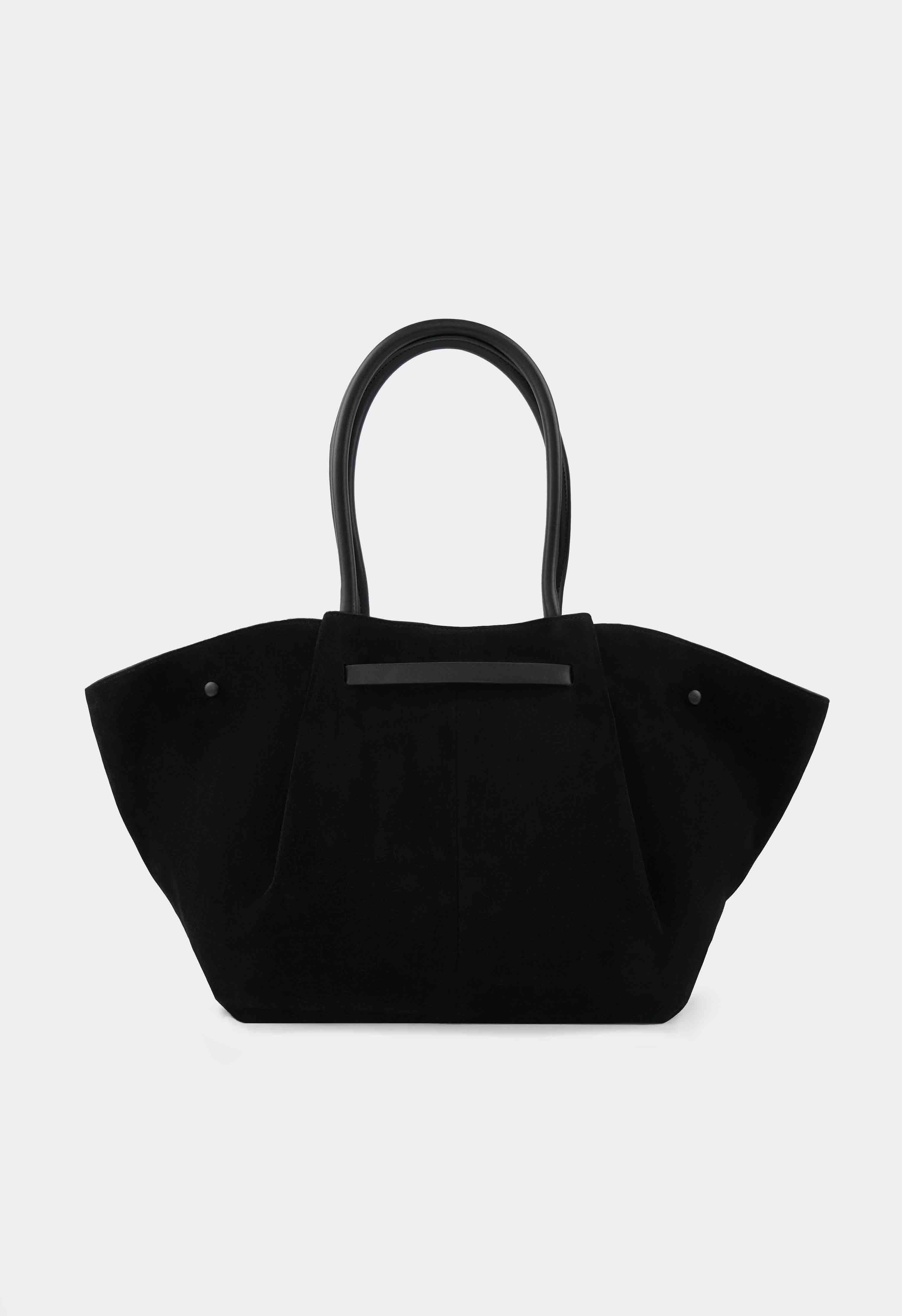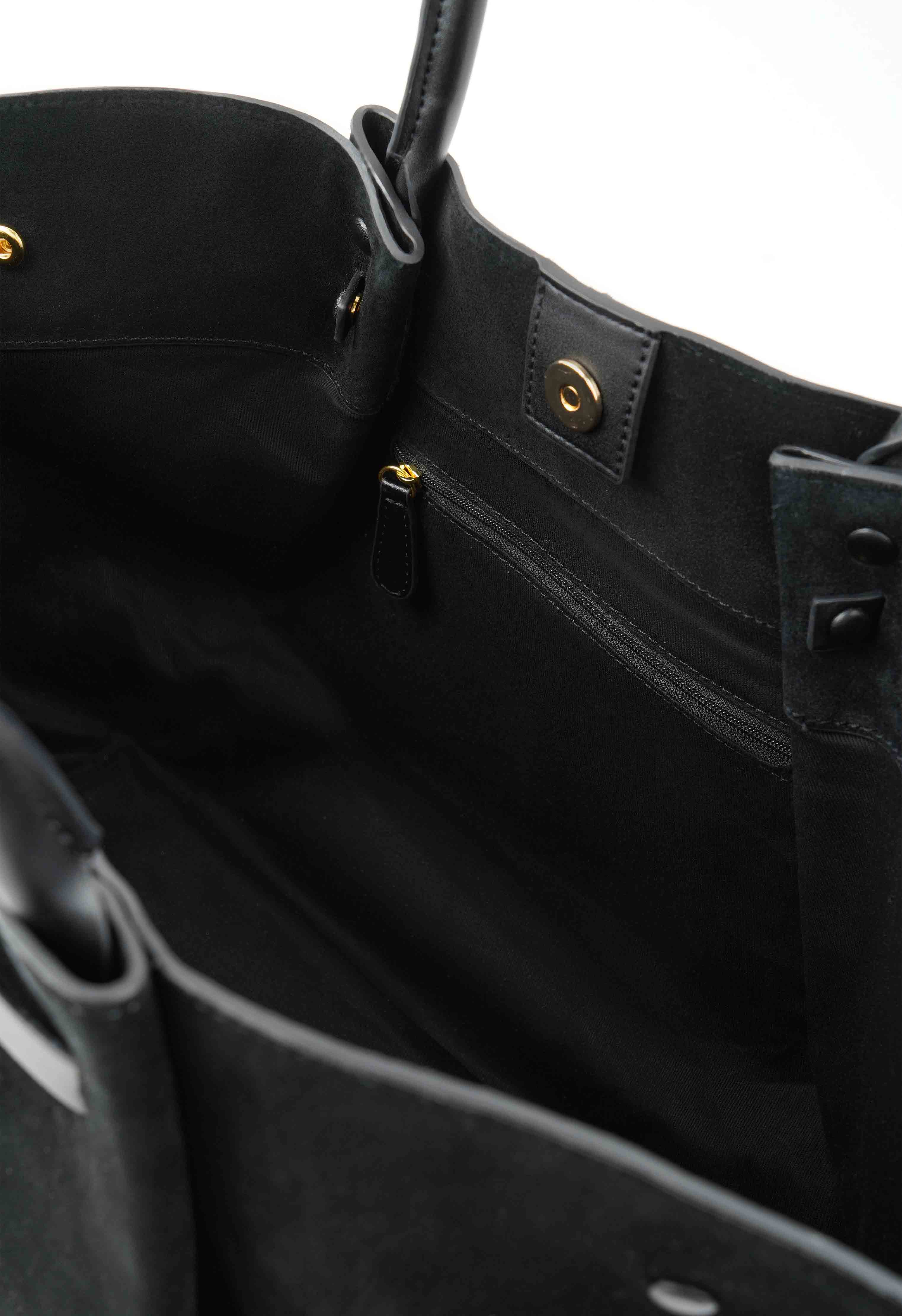 Черная сумка из натуральной замши большого размера – практичный и стильный аксессуар на каждый день. Вместительное внутреннее отделение позволяет удобно разместить документы, косметичку и другие необходимые вещи, а два внутренних кармана помогают поддерживать порядок и быстро находить мелочи. Мягкая замша в благородном коричневом оттенке и аккуратная золотистая фурнитура создают элегантный, но при этом универсальный образ, подходящий как к повседневной одежде, так и к более строгим комплектам. Сумка закрывается на удобную кнопку и подходит для тех, кто ценит сочетание функциональности и классического дизайна.