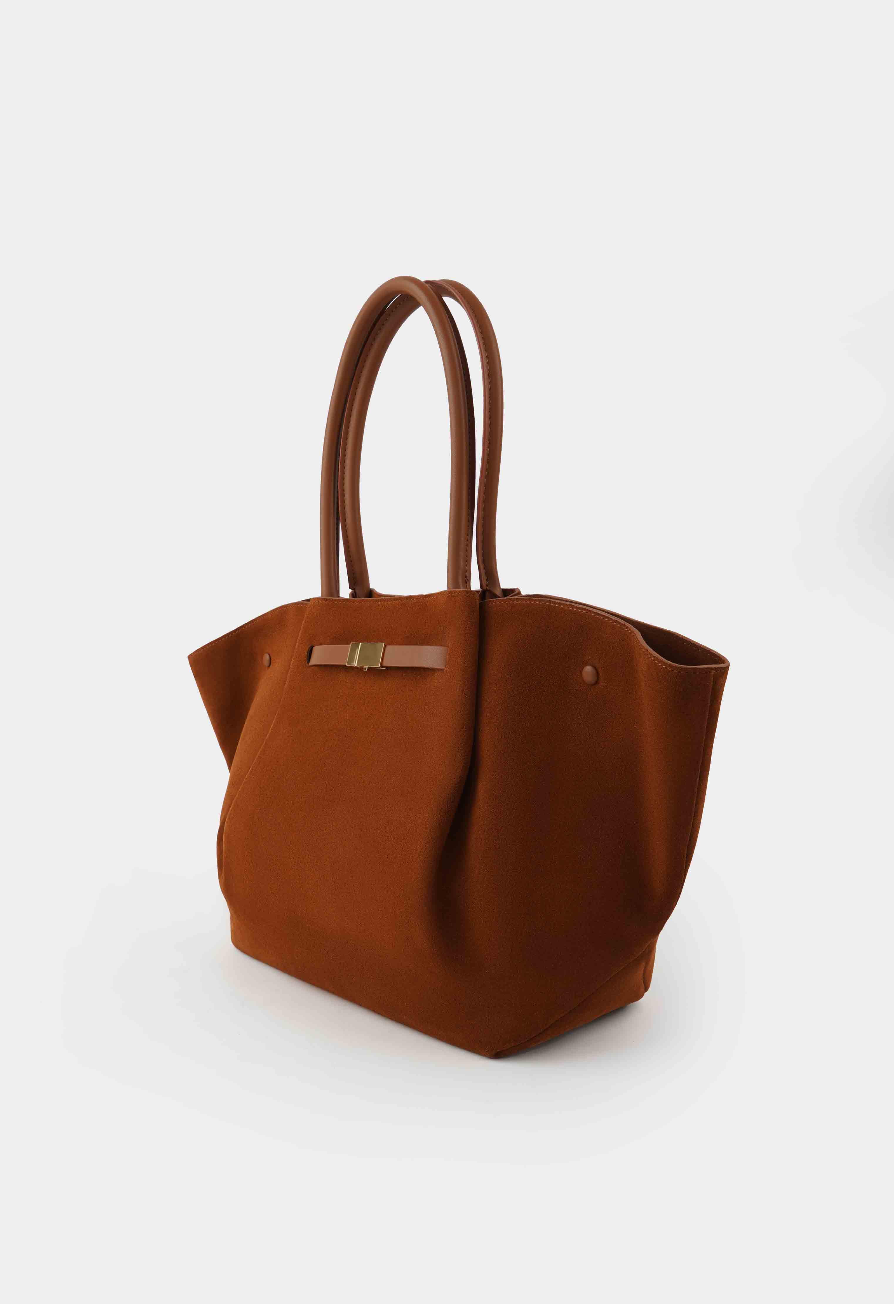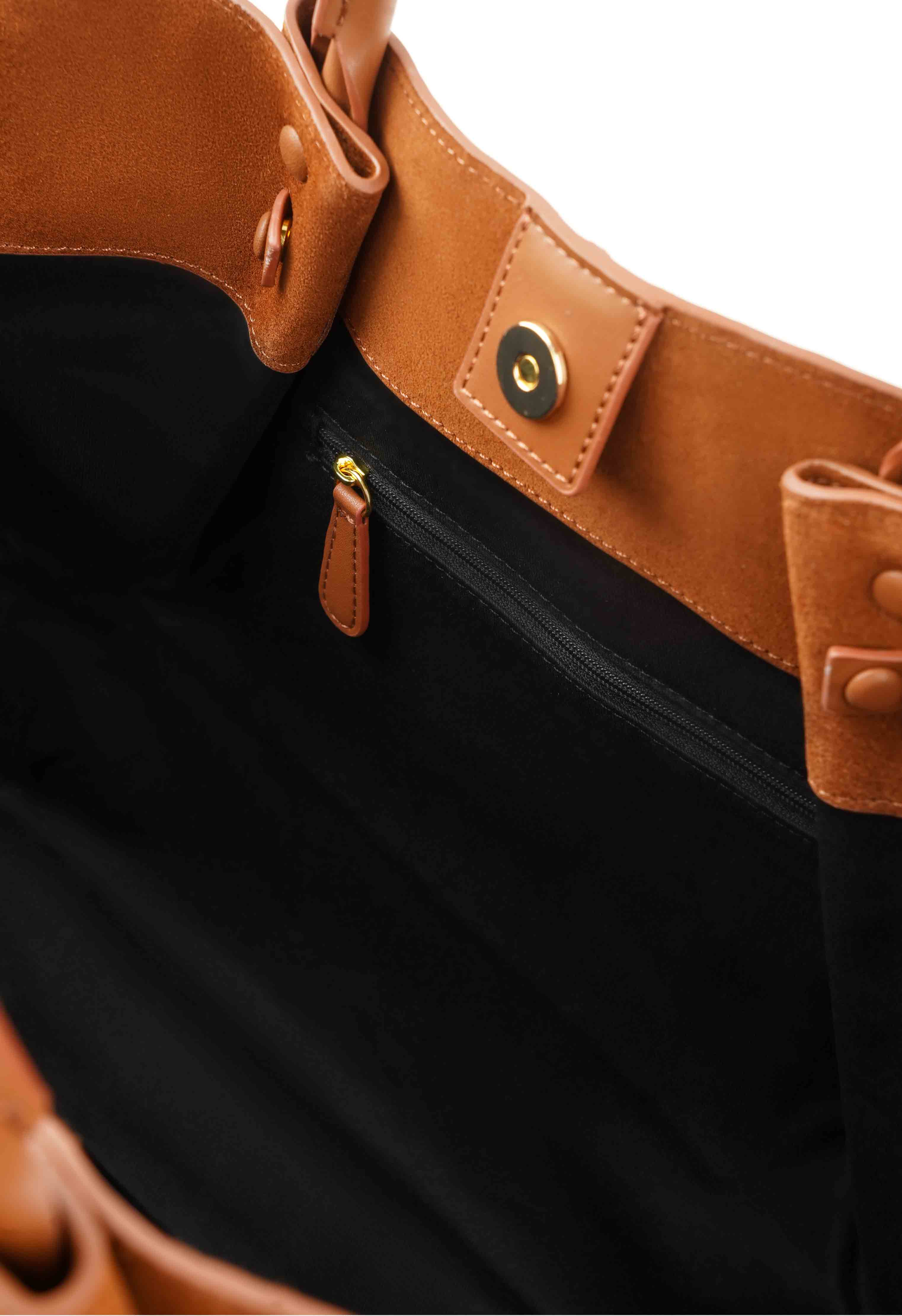 Рыжая сумка из натуральной замши большого размера – практичный и стильный аксессуар на каждый день. Вместительное внутреннее отделение позволяет удобно разместить документы, косметичку и другие необходимые вещи, а два внутренних кармана помогают поддерживать порядок и быстро находить мелочи. Мягкая замша в благородном коричневом оттенке и аккуратная золотистая фурнитура создают элегантный, но при этом универсальный образ, подходящий как к повседневной одежде, так и к более строгим комплектам. Сумка закрывается на удобную кнопку и подходит для тех, кто ценит сочетание функциональности и классического дизайна.