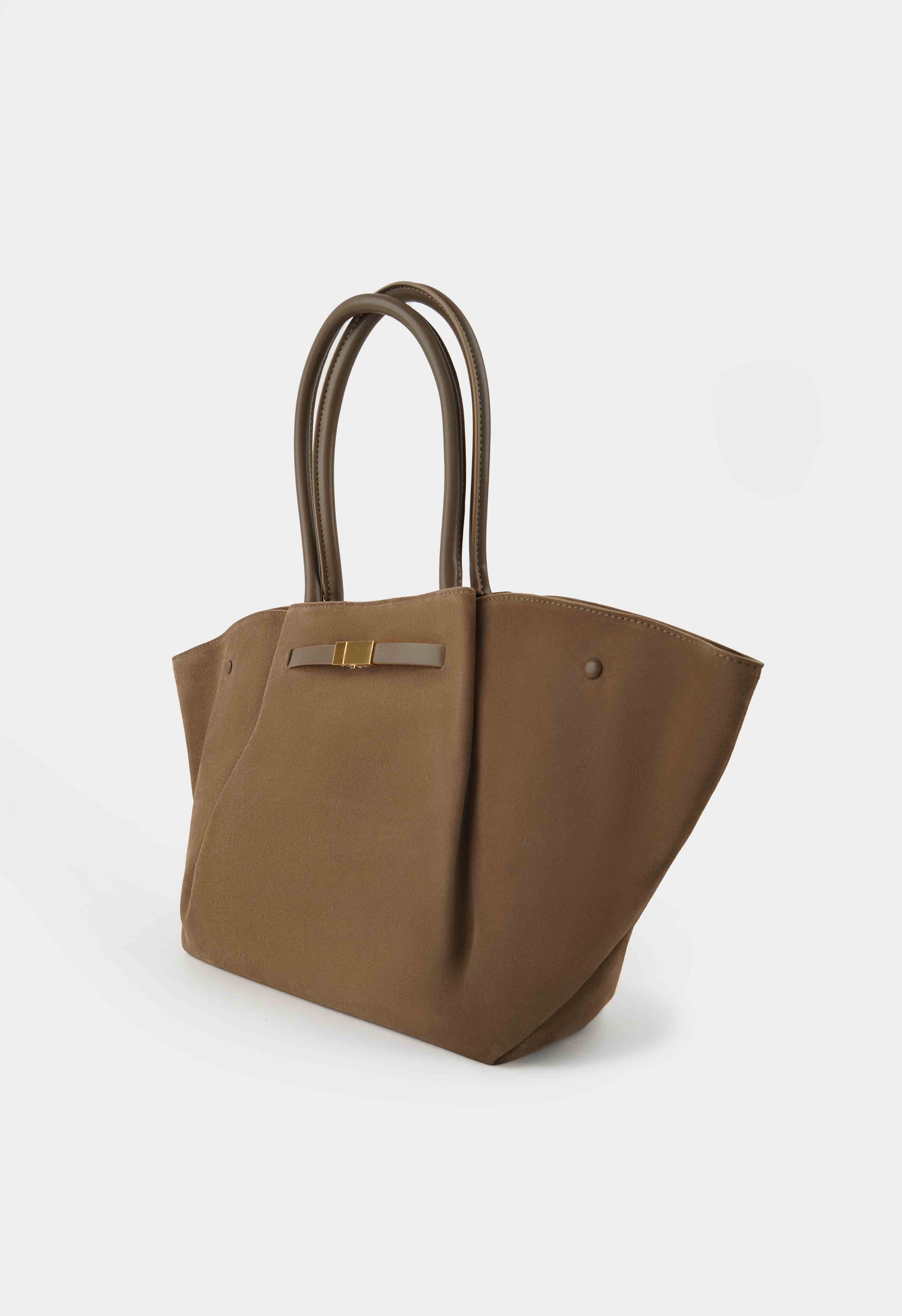Сумка в цвете хаки из натуральной замши большого размера – практичный и стильный аксессуар на каждый день. Вместительное внутреннее отделение позволяет удобно разместить документы, косметичку и другие необходимые вещи, а два внутренних кармана помогают поддерживать порядок и быстро находить мелочи. Мягкая замша в благородном коричневом оттенке и аккуратная золотистая фурнитура создают элегантный, но при этом универсальный образ, подходящий как к повседневной одежде, так и к более строгим комплектам. Сумка закрывается на удобную кнопку и подходит для тех, кто ценит сочетание функциональности и классического дизайна.