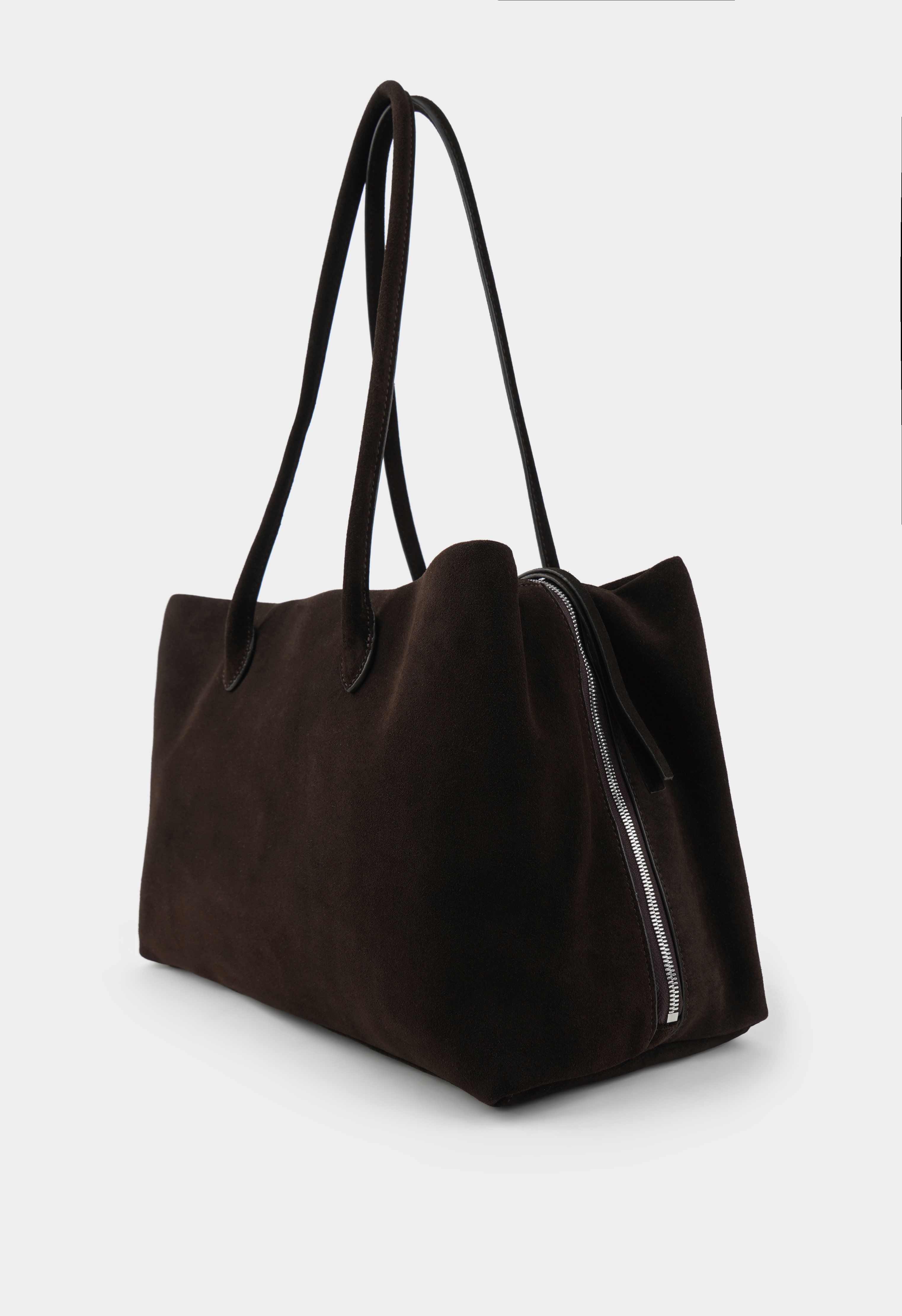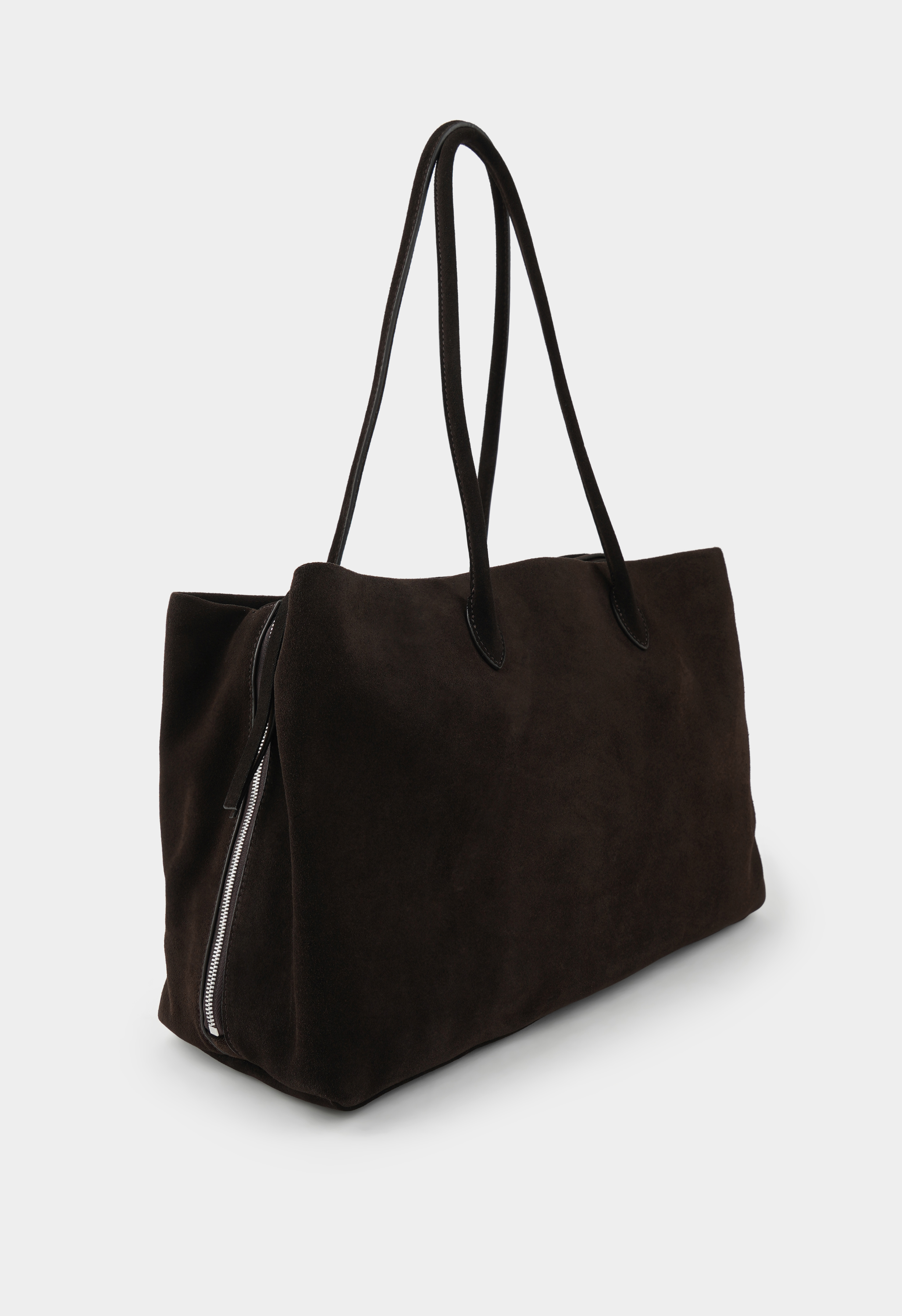 Большая сумка из натуральной замши коричневого цвета – идеальный союз стиля и функциональности. Просторное основное отделение удобно хранит все необходимые вещи, а два внутренних кармана помогают поддерживать порядок. Внутренний вкладыш из замши на шнурке с магнитной застежкой и двумя дополнительными карманами позволяет удобно распределять мелкие предметы, в то время как кожаный шнурок и серебряная фурнитура добавляют элегантный и современный акцент. Эта сумка станет универсальной парой для повседневных образов и стильным дополнением к особым случаям, подчеркивая ваш вкус и уверенность.