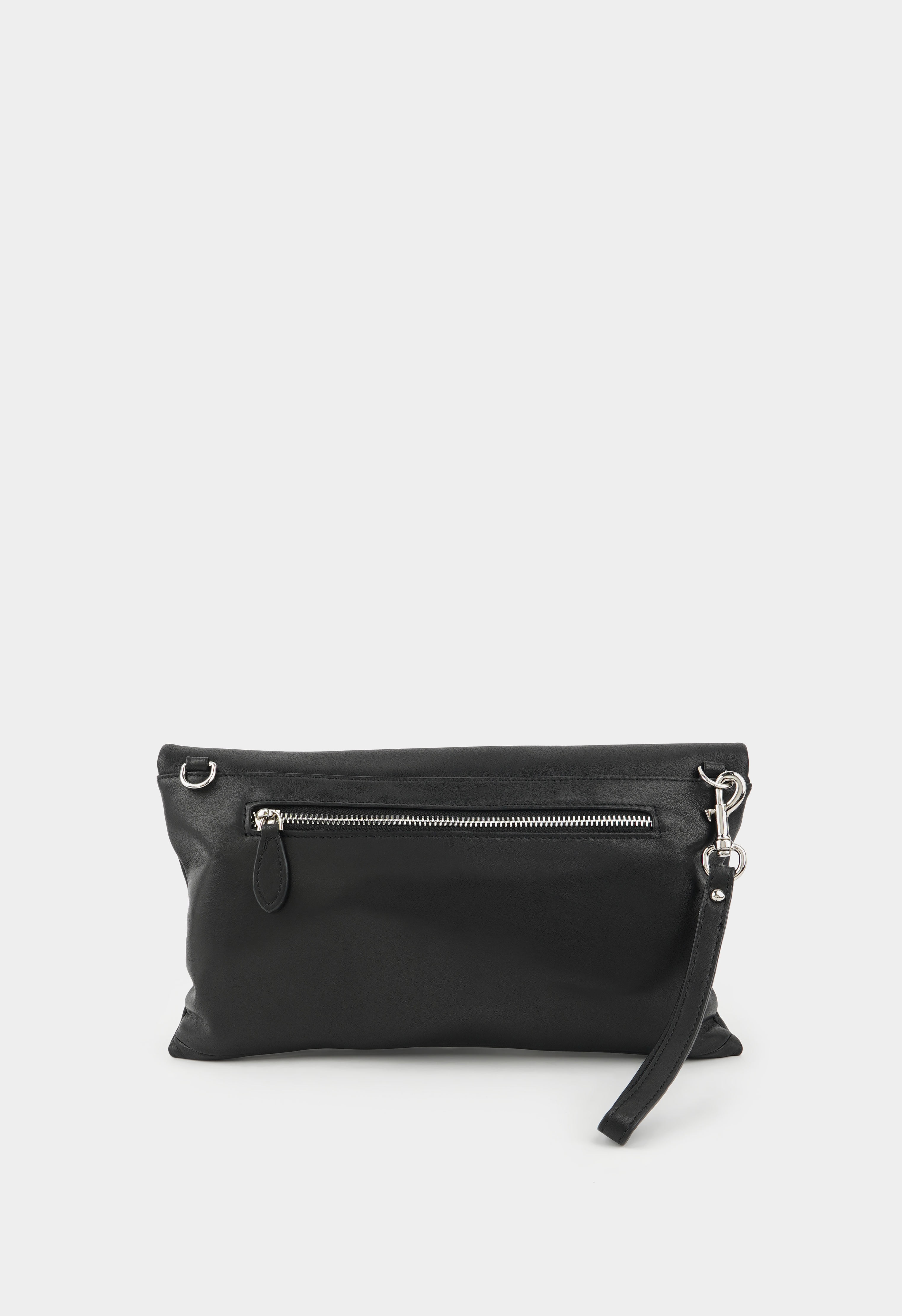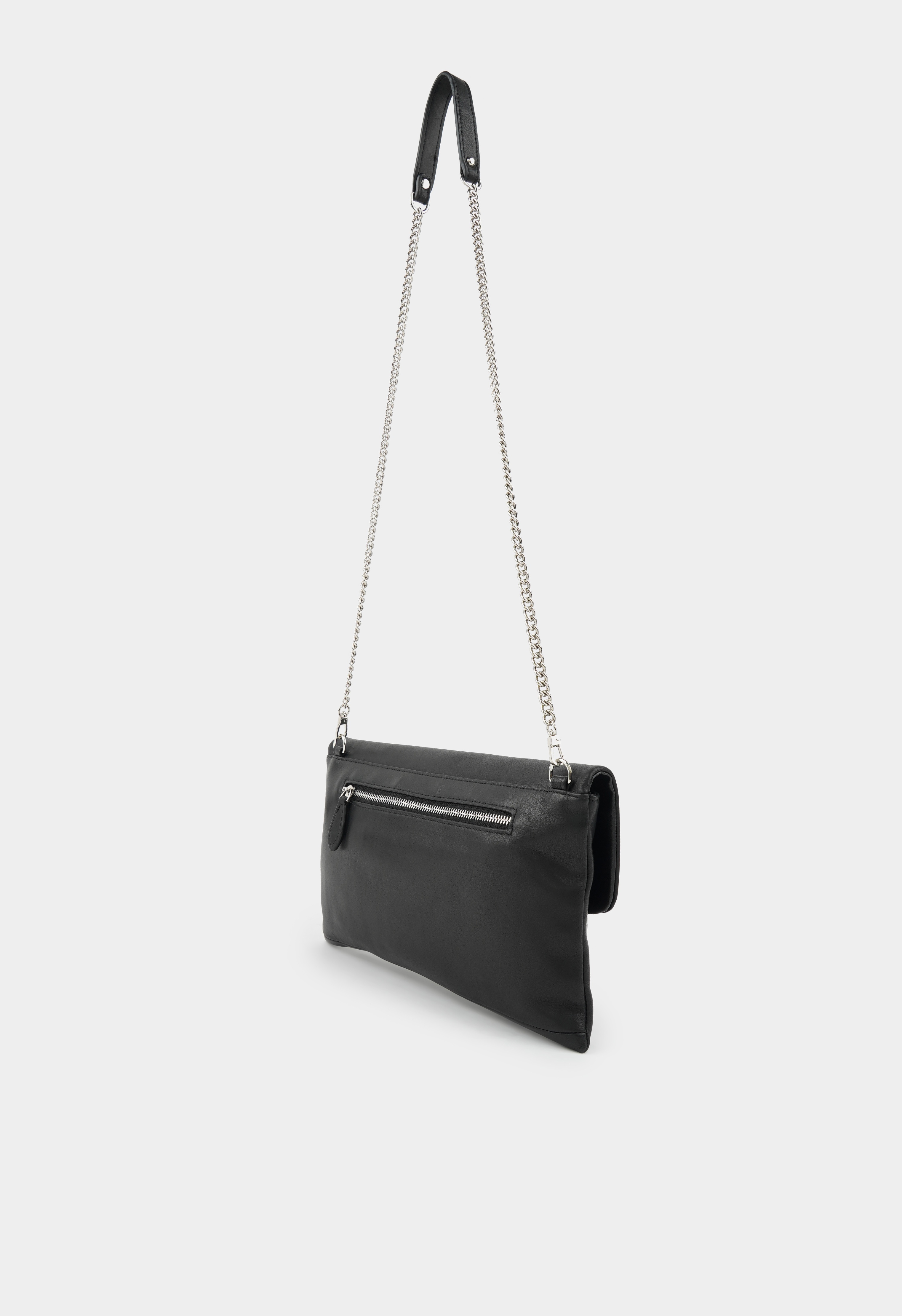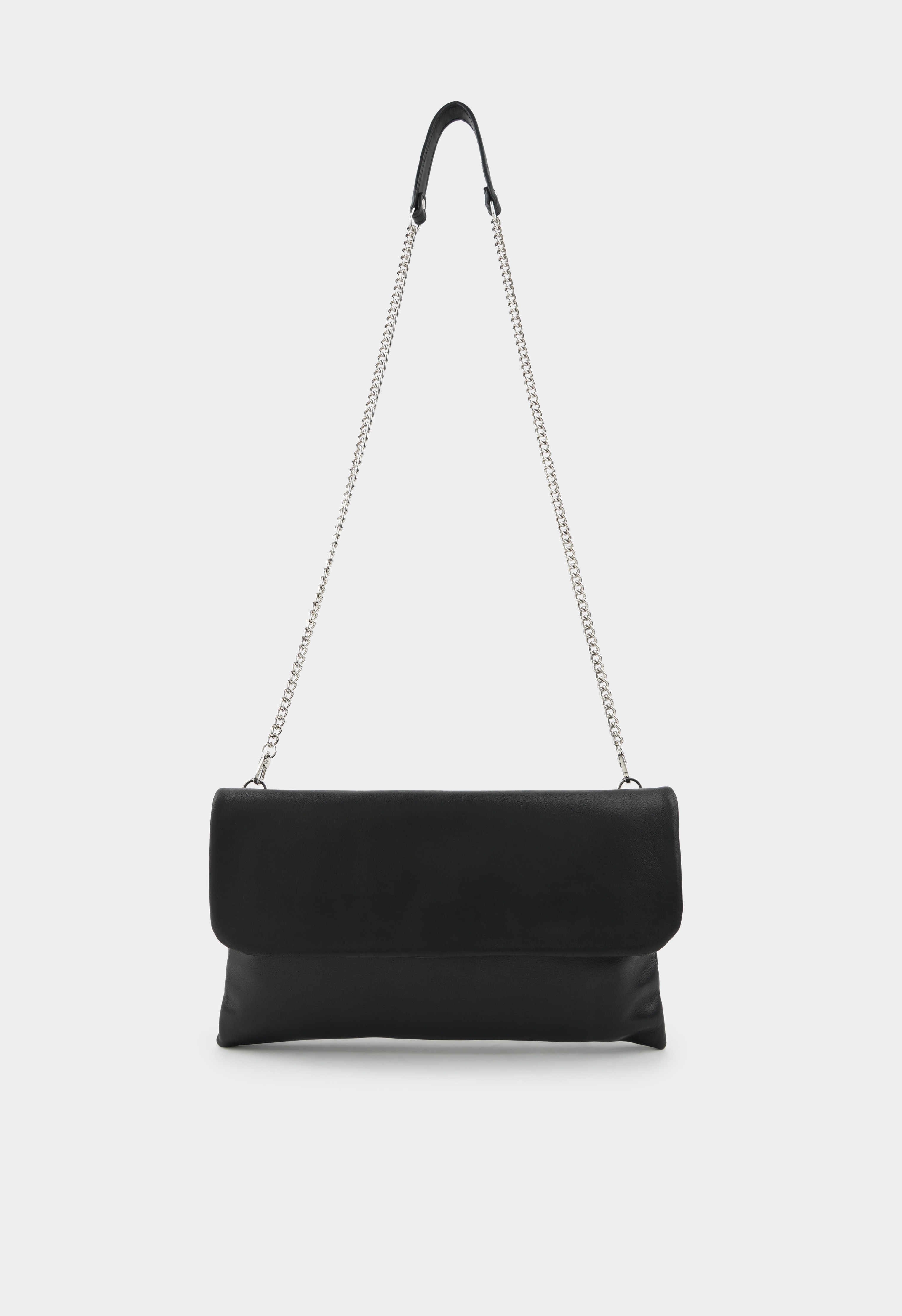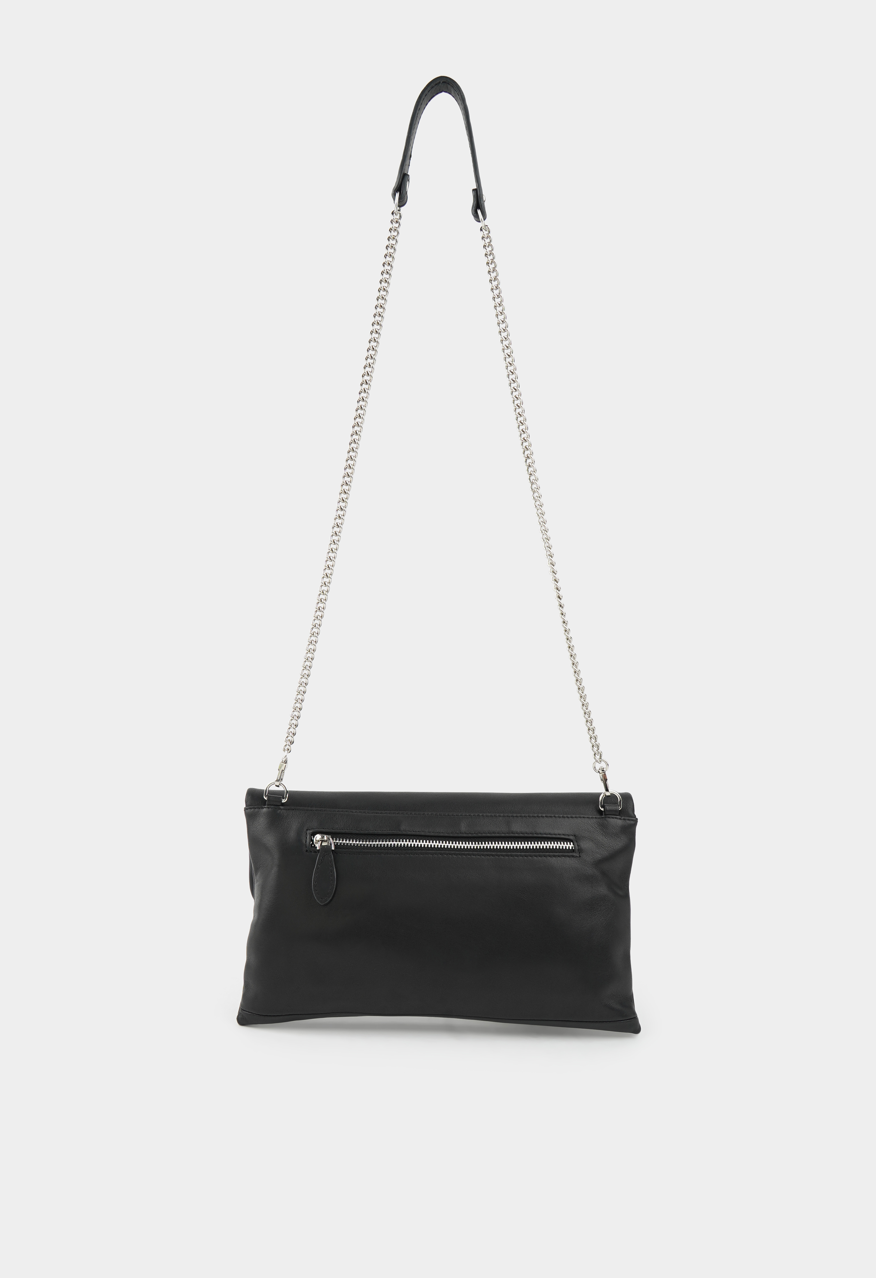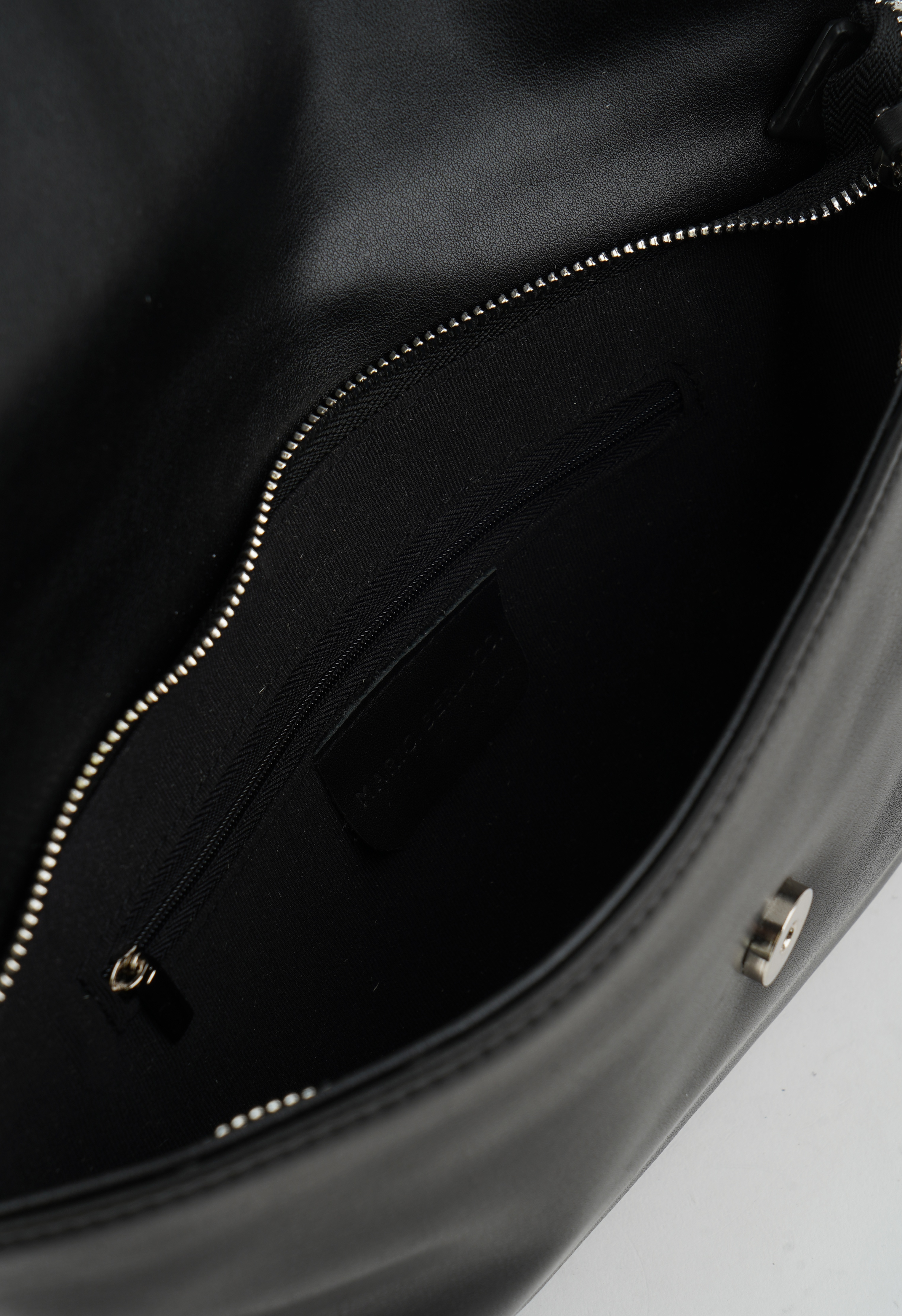 Актуальная сумка из натуральной кожи в классическом черном цвете создана для тех, кто ценит стиль и удобство в каждой детали. Компактный размер делает ее идеальным спутником на каждый день и для особых случаев, а продуманный дизайн с молнией и кнопкой, серебряной фурнитурой и съемной ручкой на карабине подчеркивает изысканность образа. Внутри два кармана помогут аккуратно разместить нужные мелочи, в то время как один внешний обеспечит быстрый доступ к самым необходимым вещам. Съемный плечевой ремень-цепочка добавляет универсальности: модель легко носить и на плече, и в руках.