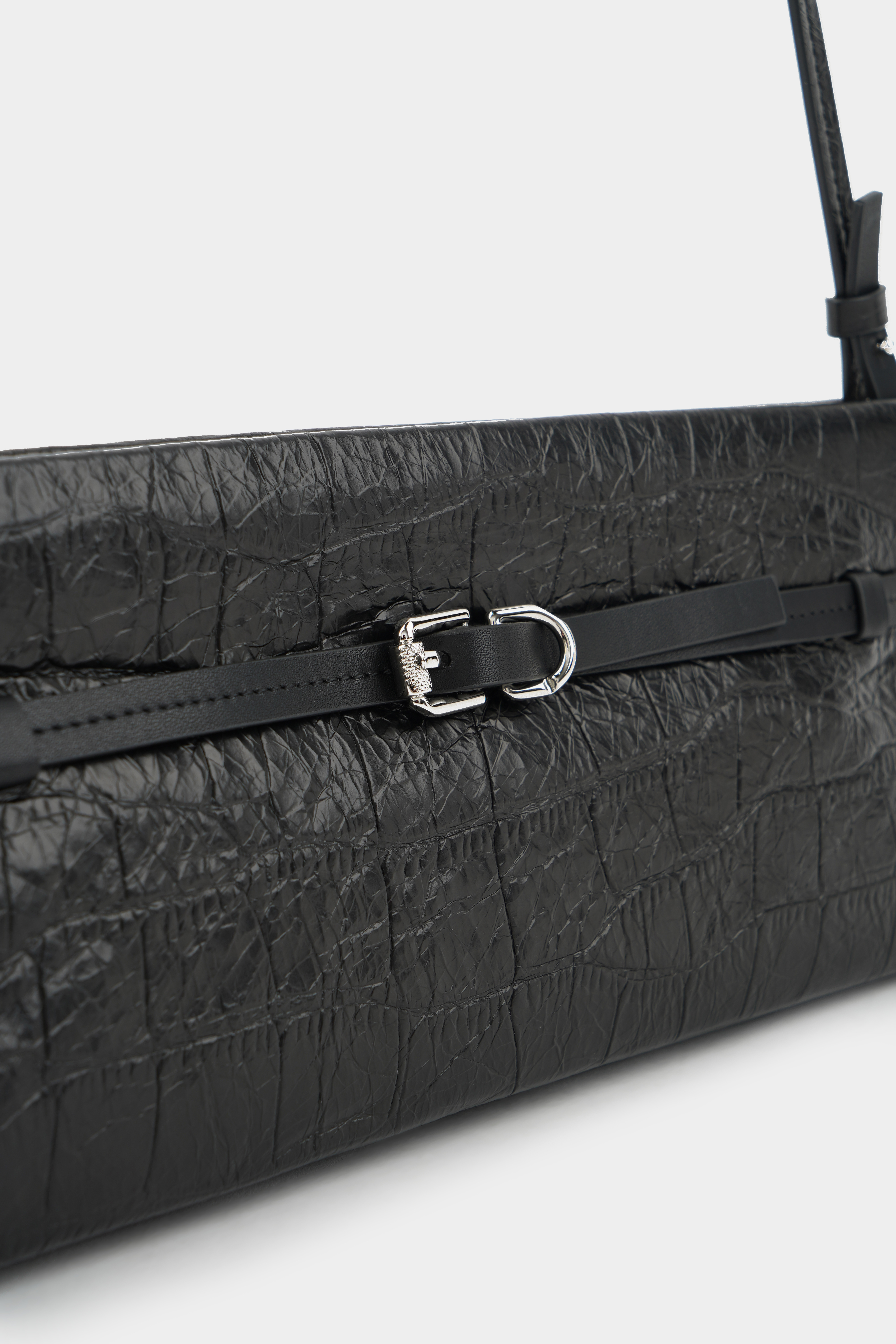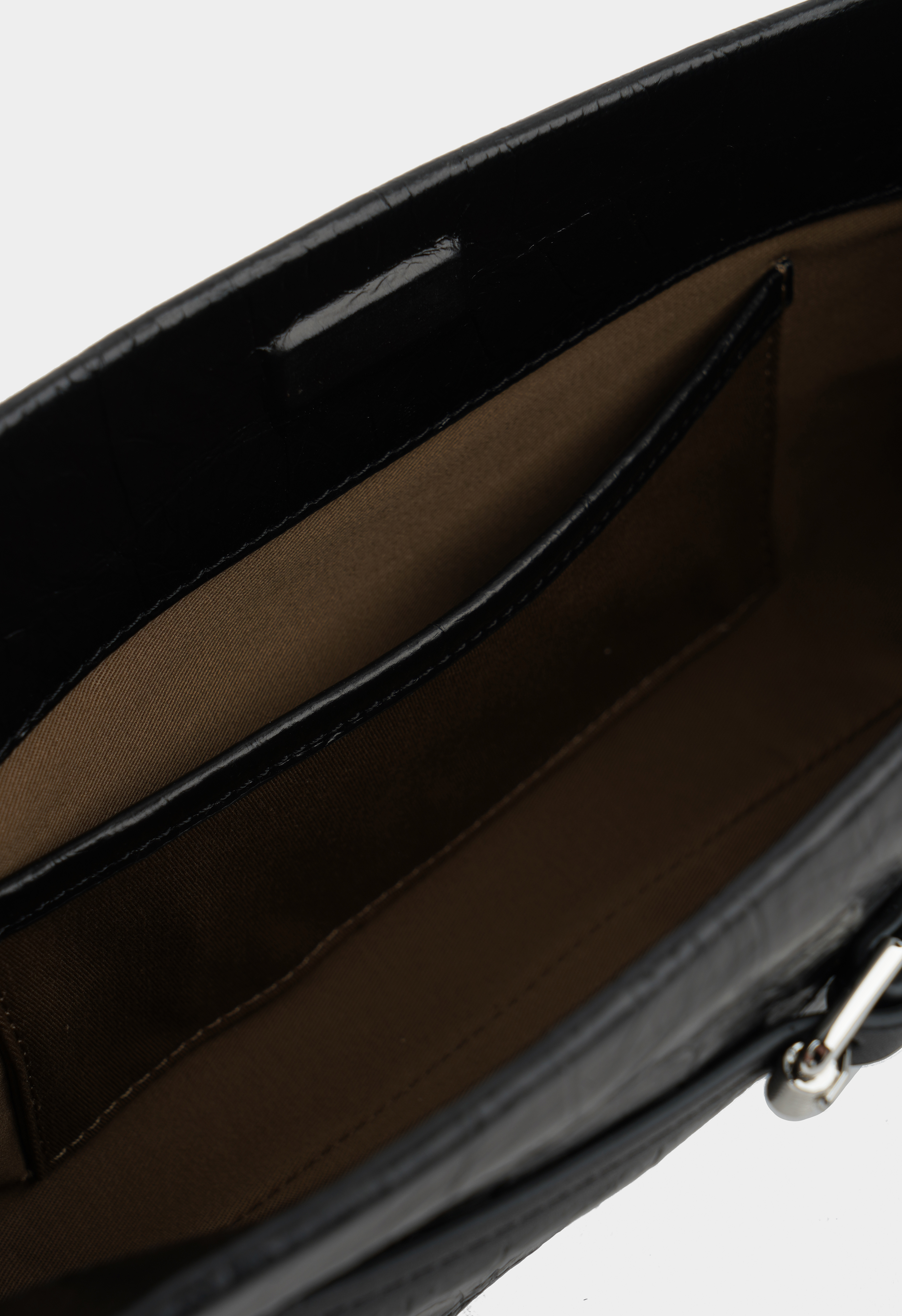 Стильная компактная сумка из натуральной кожи черного цвета – сочетание элегантности и практичности в одном аксессуаре. Один внутренний карман позволяет держать необходимые мелочи в порядке, а магнитная застежка и серебряная фурнитура добавляют утонченный и современный акцент. Плечевой ремень и декоративный кожаный ремешок с пряжкой делают модель удобной и функциональной, позволяя носить сумку как в повседневной жизни, так и на особых мероприятиях.