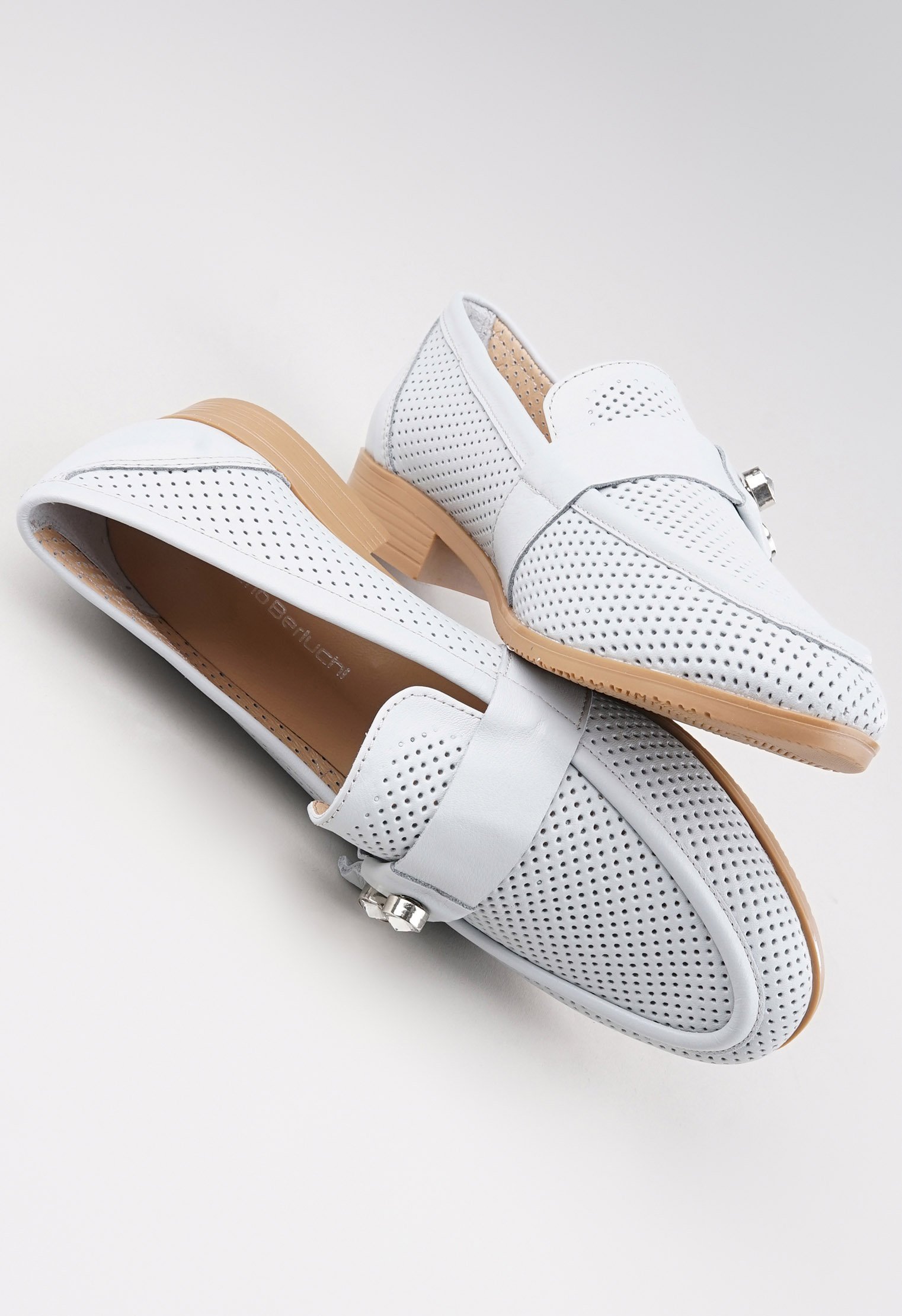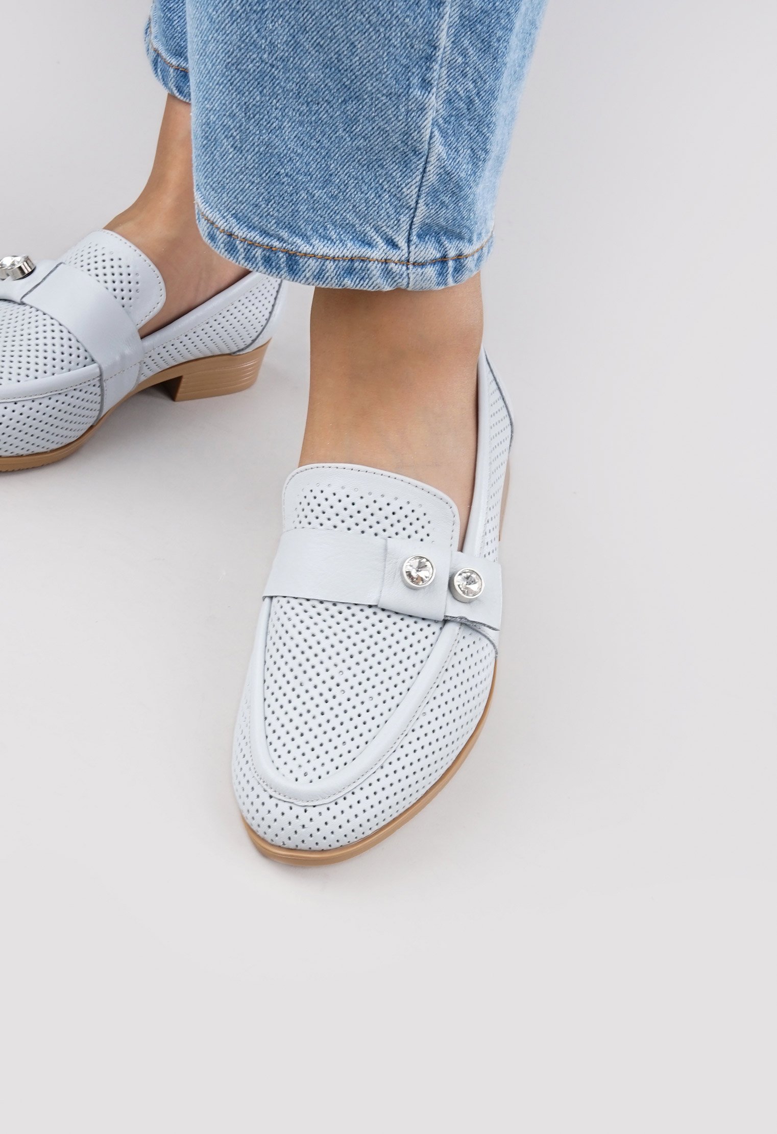 Обратите внимание: данная модель идёт в размер и отлично подходит для ног со средней полнотой стопы. Советуем проконсультироваться с менеджером по выбору наиболее подходящего Вам размера. Стильные слиперы выполнены из натуральной гладкой кожи и представлены в голубом цвете. Изделие дополнено каблуком средней высоты и мягкой кожаной подкладкой. Специальная анатомическая стелька предохраняет от усталости в конце дня. Лаконичная модель из новой коллекции превосходно впишется как в классический, так и в повседневный образ.