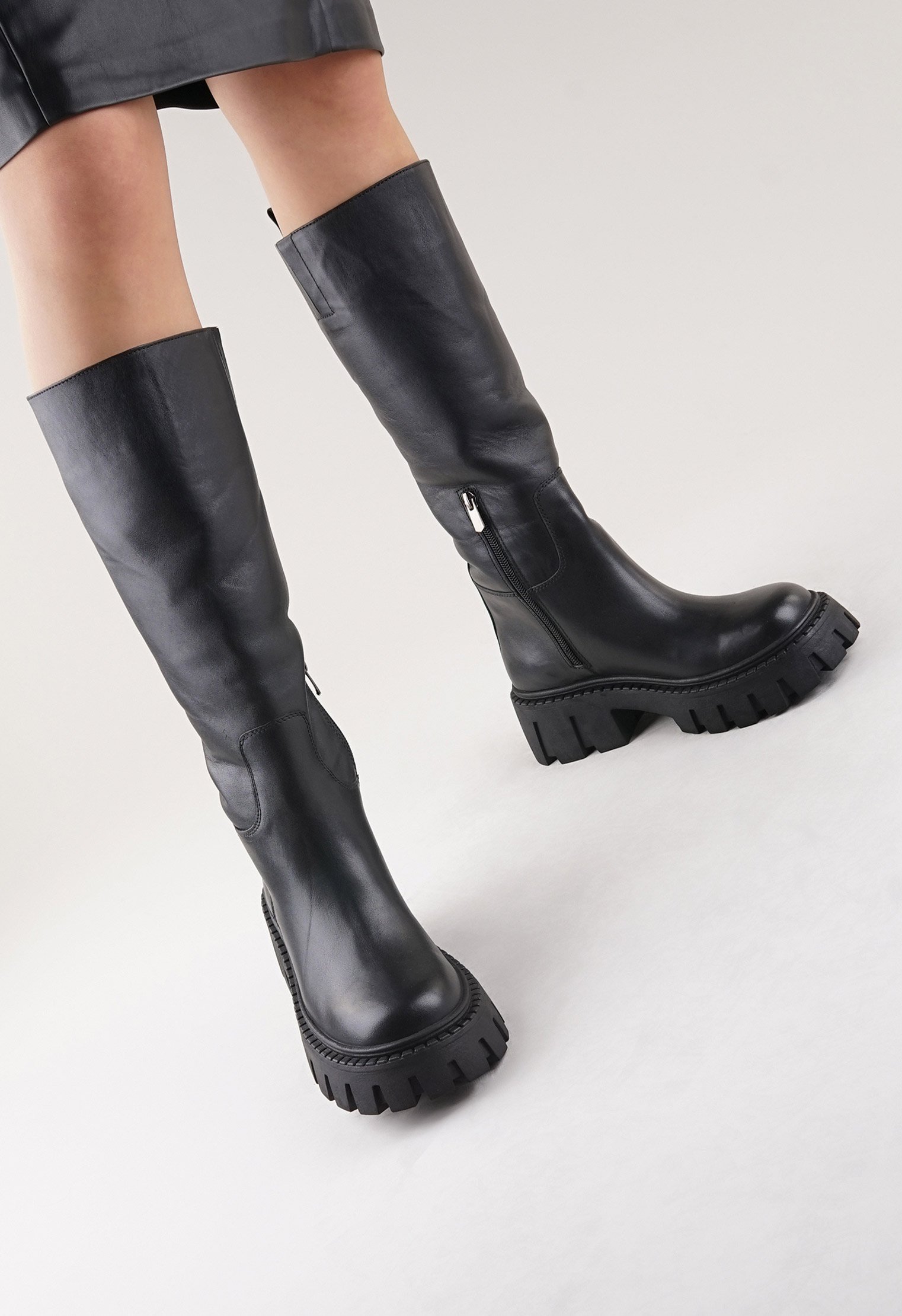 Обратите внимание: данная модель идёт в размер и отлично подходит для ног со средней и широкой полнотой и средним подъёмом стопы. Стильные сапоги из новой коллекции выполнены из натуральной кожи и дополнены платформой с протектором. Специальная кожаная петля и удобная молния сбоку позволяют легко одевать и снимать изделие. Утеплённая подкладка и стелька из байки обеспечивают комфорт в демисезон. Однотонная модель идеально сочетается с классическими и современными нарядами.