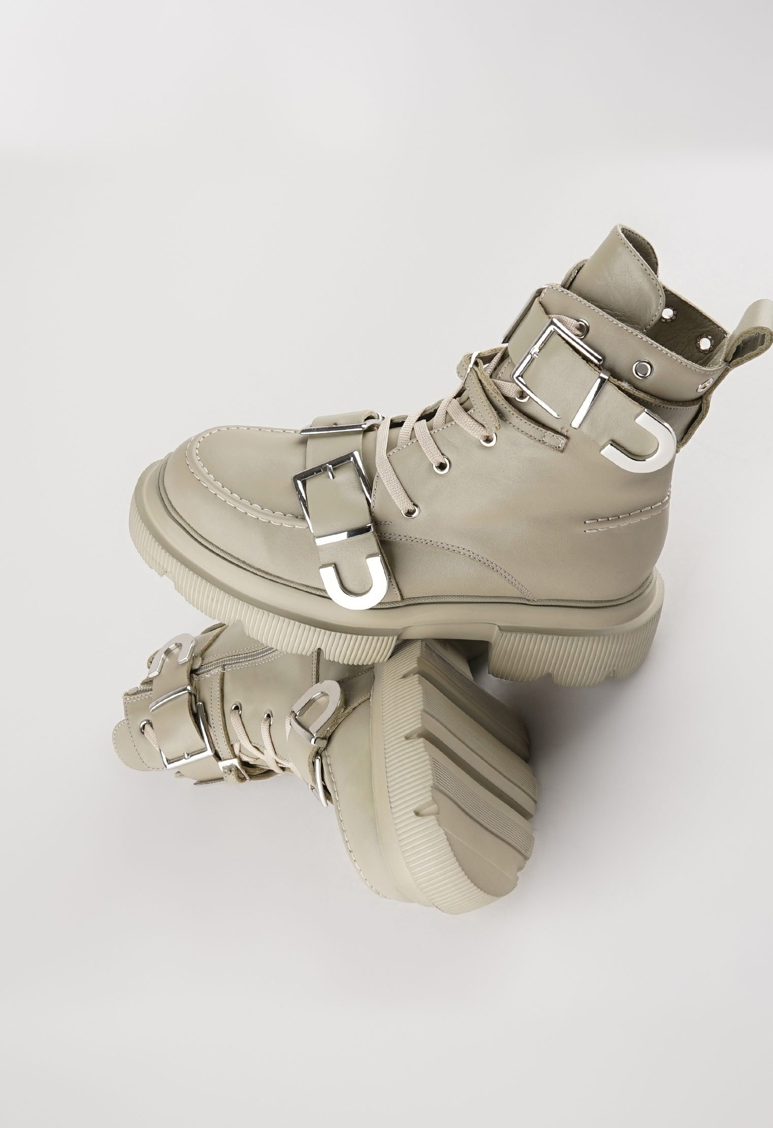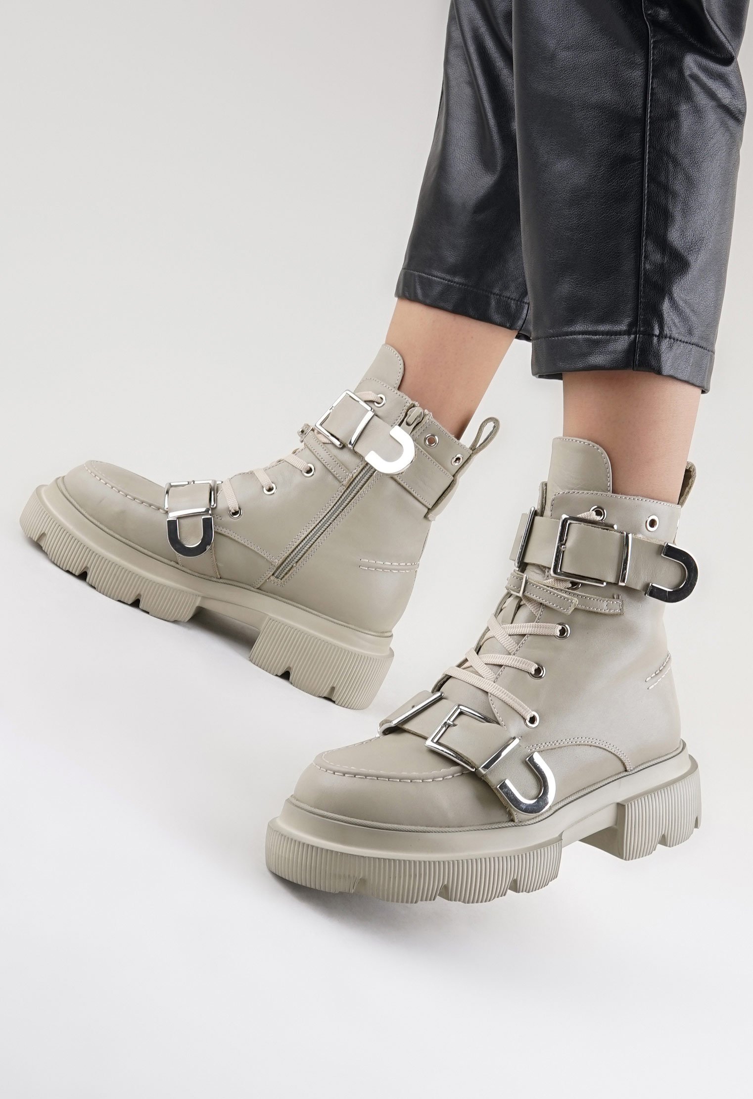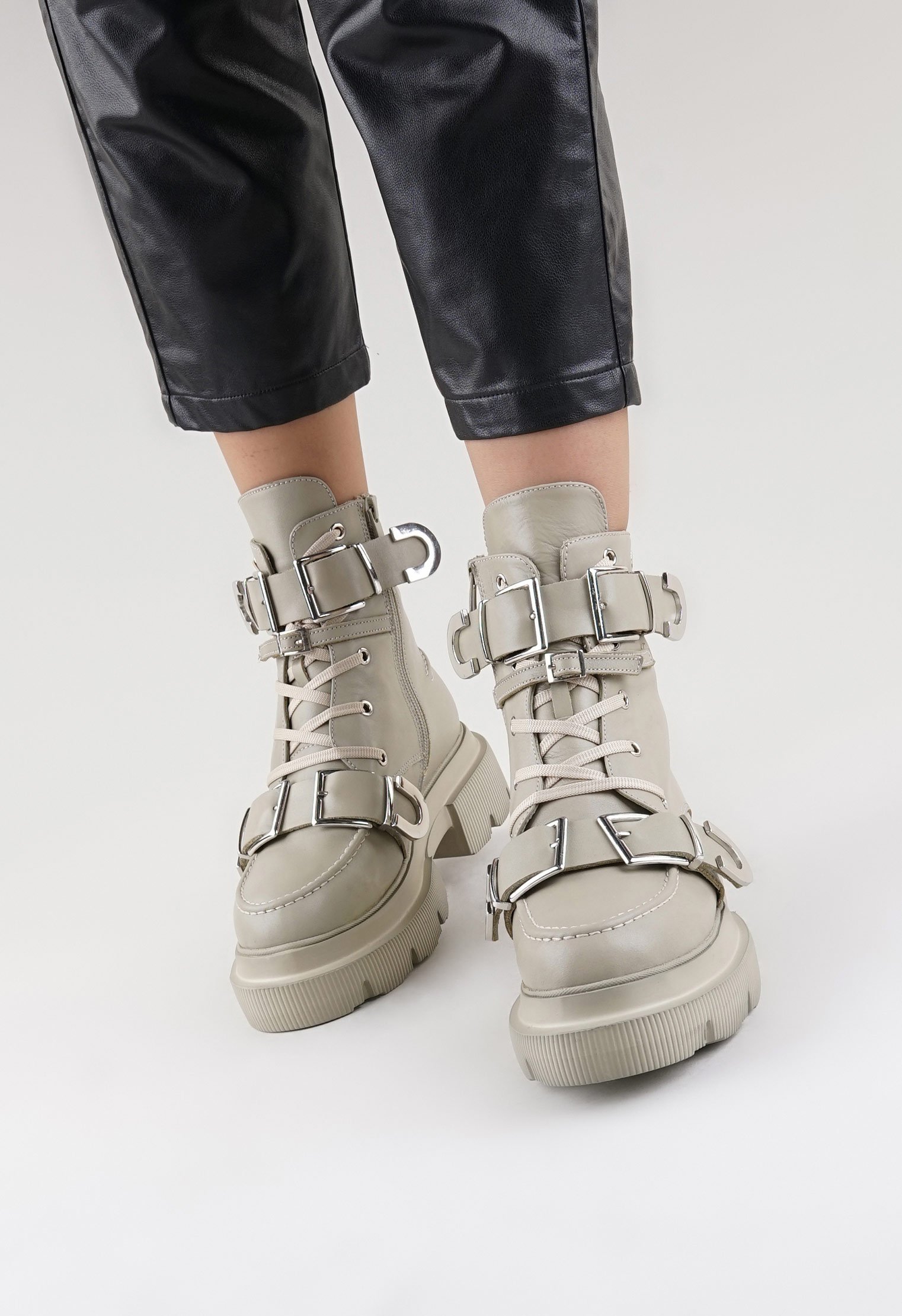 Обратите внимание: данная модель идёт в размер и отлично подходит для ног со средней полнотой стопы. Ультрамодные ботинки на шнуровке выполнены из натуральной кожи и декорированы серебристой фурнитурой. Специальная кожаная петля и удобная молния сбоку позволяют легко одевать и снимать изделие. Утеплённая подкладка и стелька из натурального меха обеспечивают комфорт в зимний сезон. Актуальная модель идеально впишется в яркий гардероб.