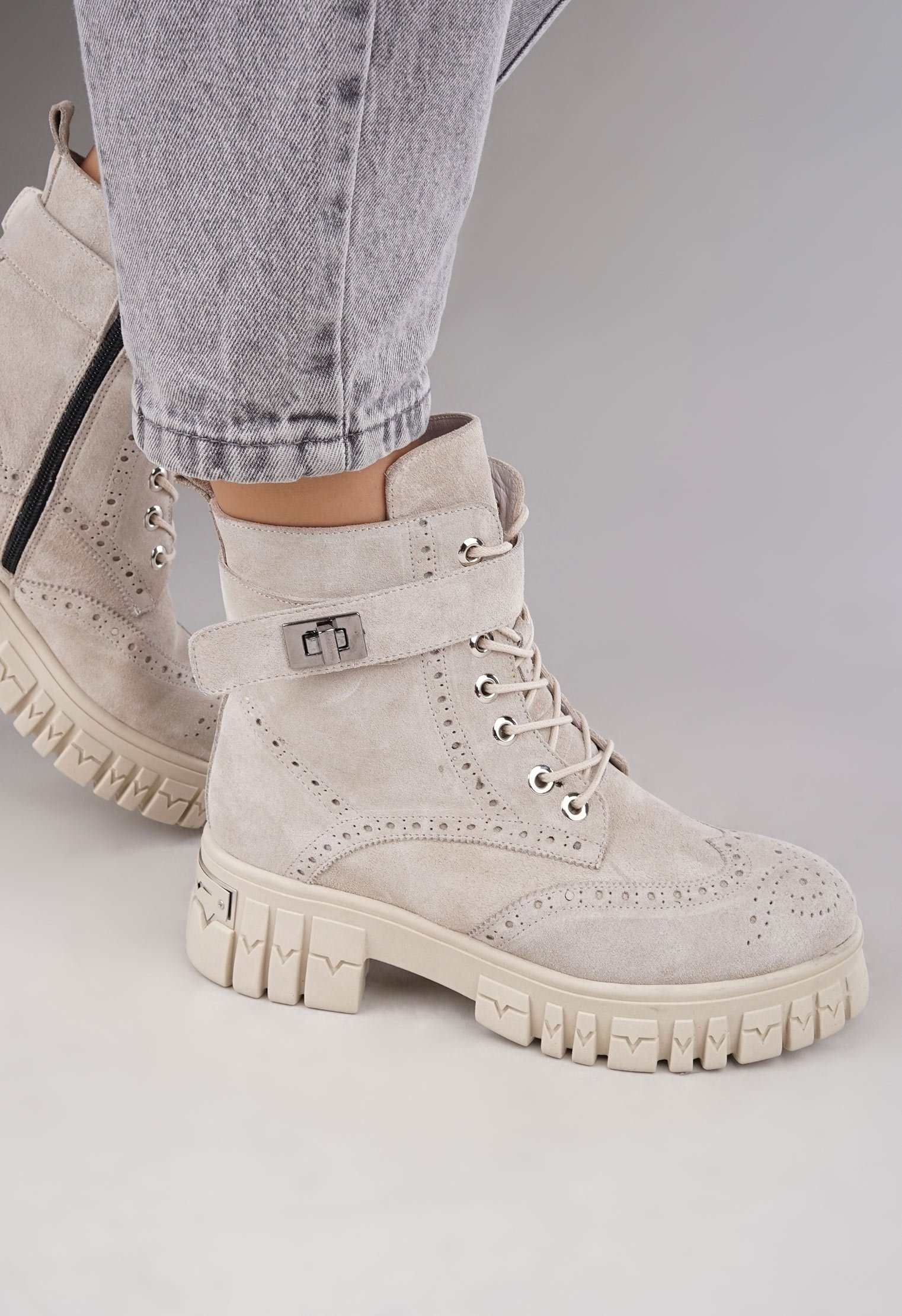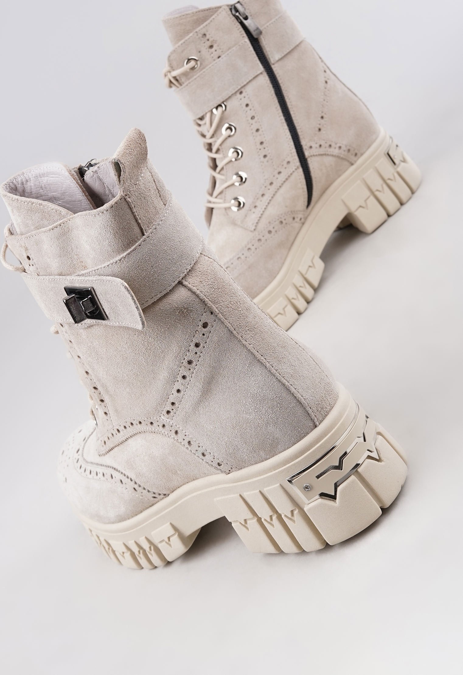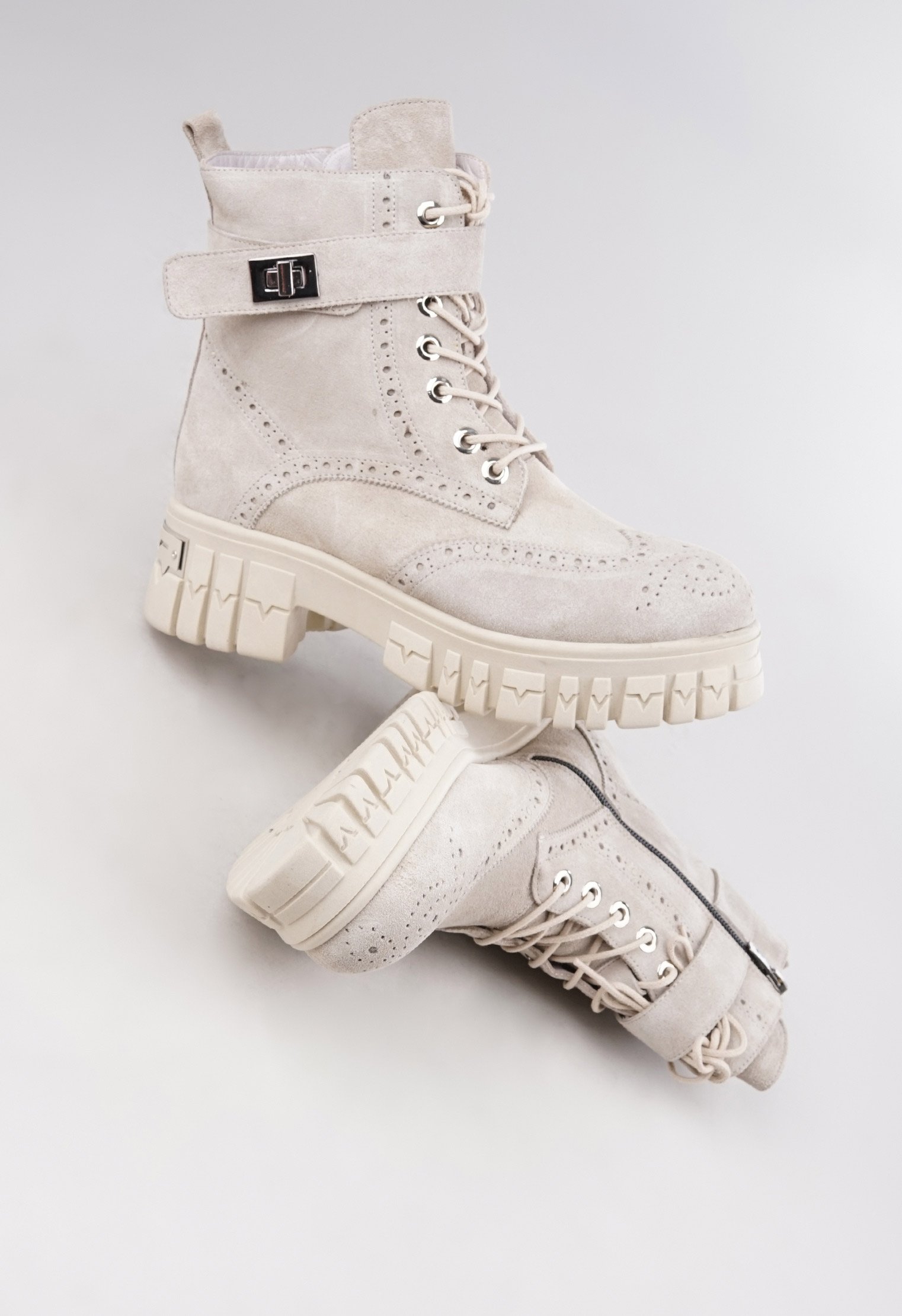 Обратите внимание: данная модель идёт в размер и отлично подходит для ног со средней полнотой стопы. Стильные ботинки из новой коллекции выполнены из натуральной мягкой замши и декорированы металлической фурнитурой. Специальная петля и удобная молния сбоку позволяют легко одевать и снимать изделие. Утеплённая подкладка из натурального меха обеспечивает комфорт в зимний сезон. Современная модель станет удачным дополнением к стильному образу.