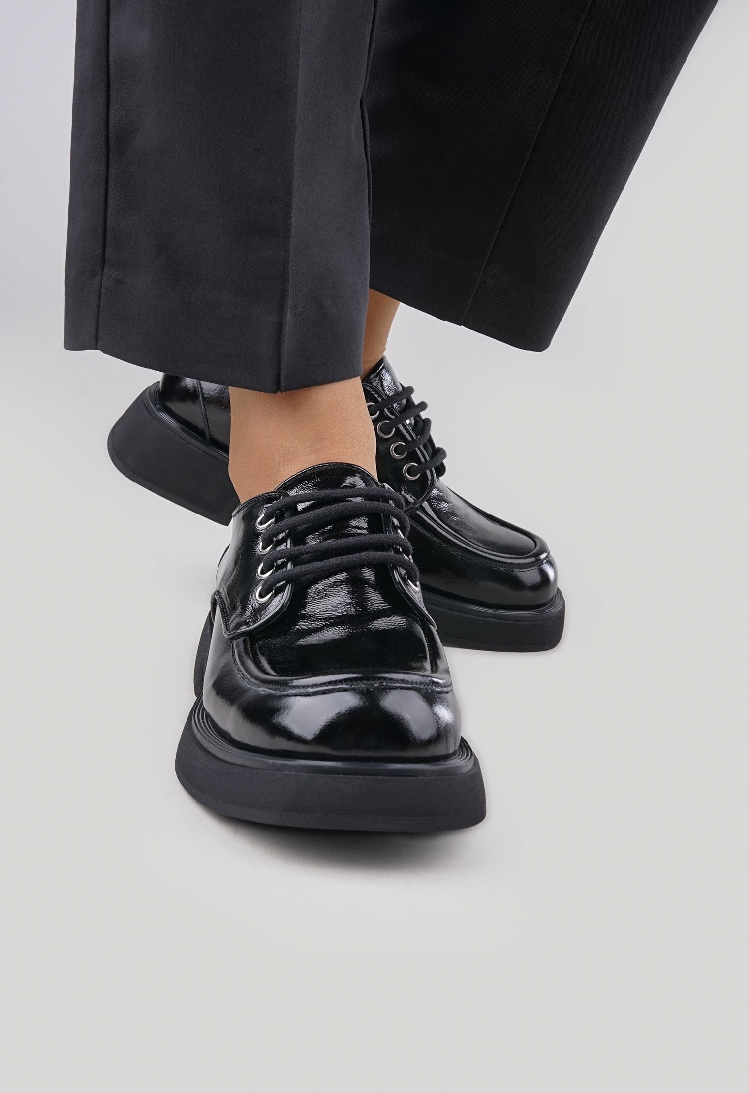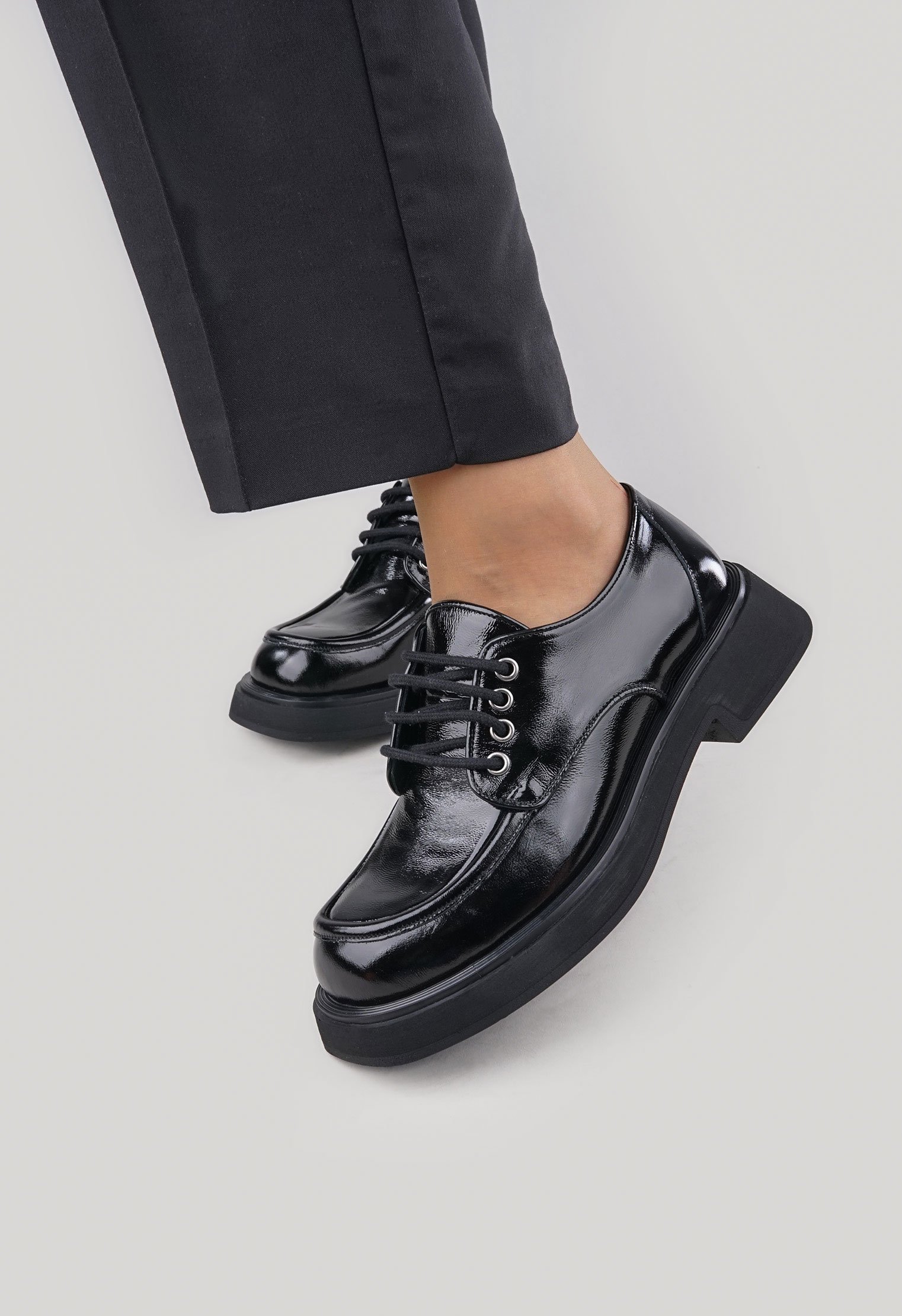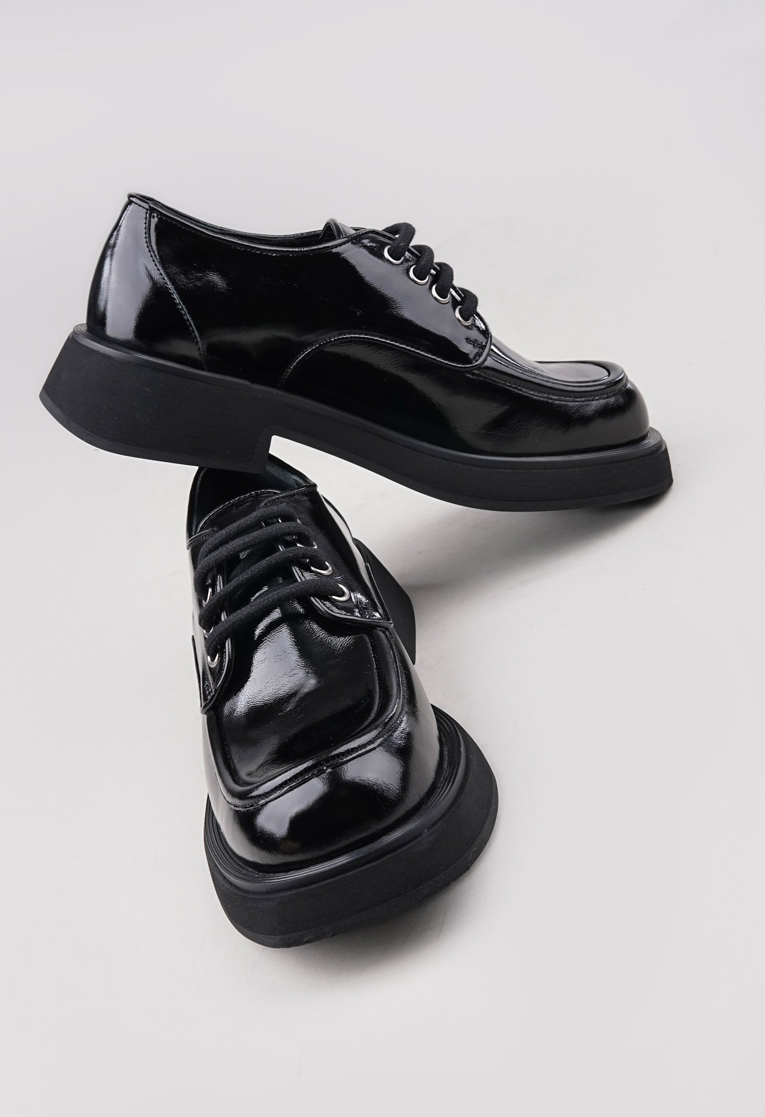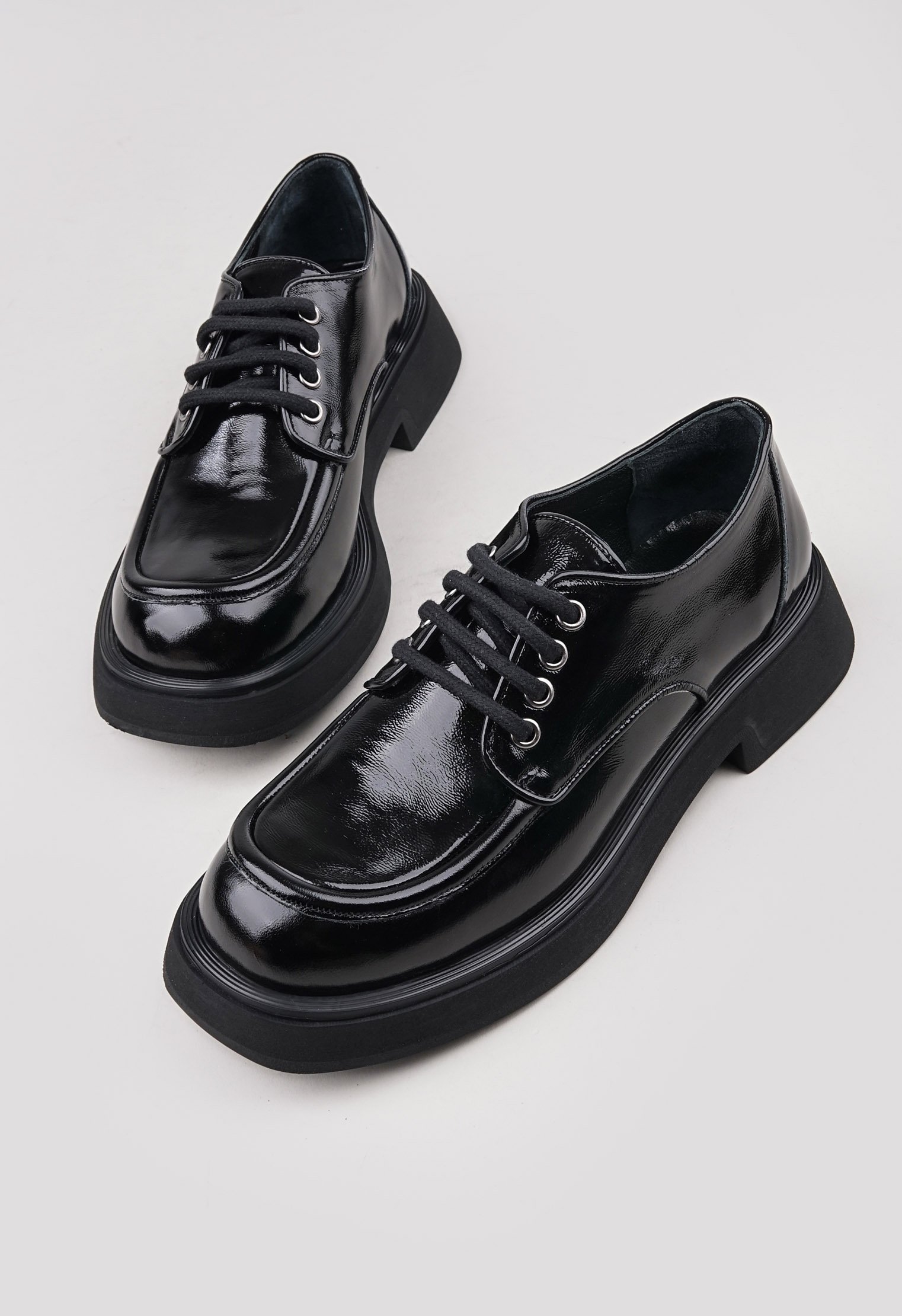 Обратите внимание: данная модель идёт в размер и отлично подходит для ног со средней и широкой полнотой стопы. Советуем проконсультироваться с менеджером по выбору наиболее подходящего Вам размера. Однотонные туфли из новой коллекции выполнены из натуральной лаковой кожи и представлены в классической расцветке. Платформа на широком каблуке позволяет равномерно распределить нагрузку на стопу, мягкая кожаная подкладка обеспечивает особенно комфортную посадку. Современный силуэт удачно сочетается с элементами базового и повседневного гардероба.