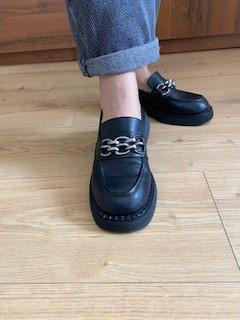 Суперские туфли, хотелось именно черные, эти подошли, есть своя изюминка и подошва совсем не тоненькая. Идут как маломерки, на узкую ножку. Довольна покупкой, очень стильные!!!